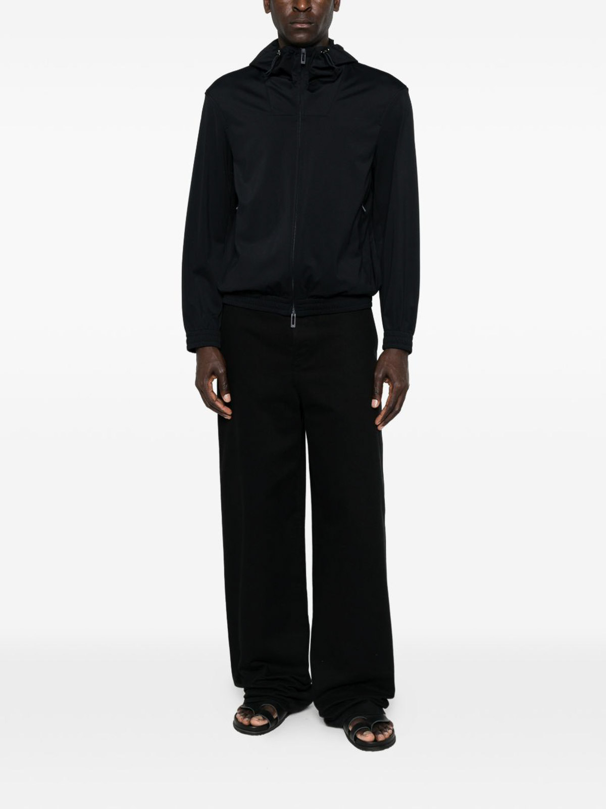 ブルーフードファスナーサイドファスナーポケット長袖伸縮性カフス