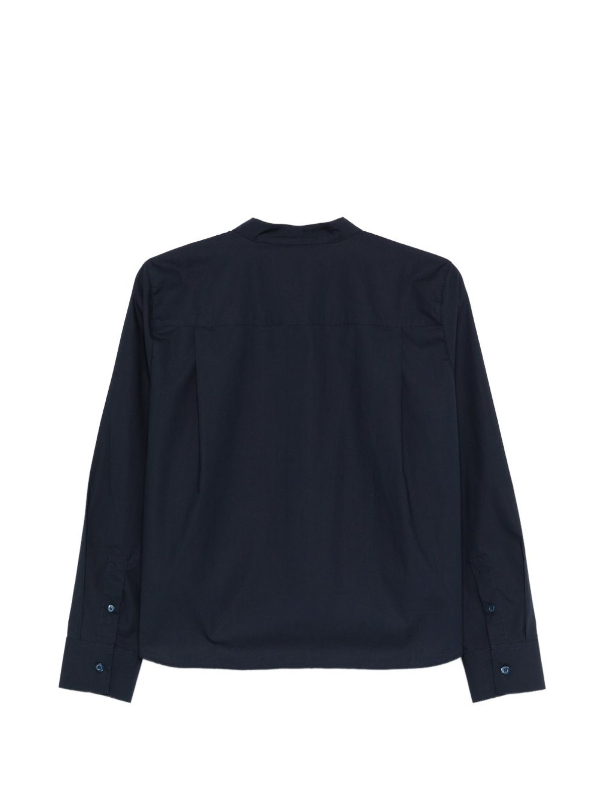 ブルーエンブロイダリーディテールボタン留め長袖ラウンドネックコットン