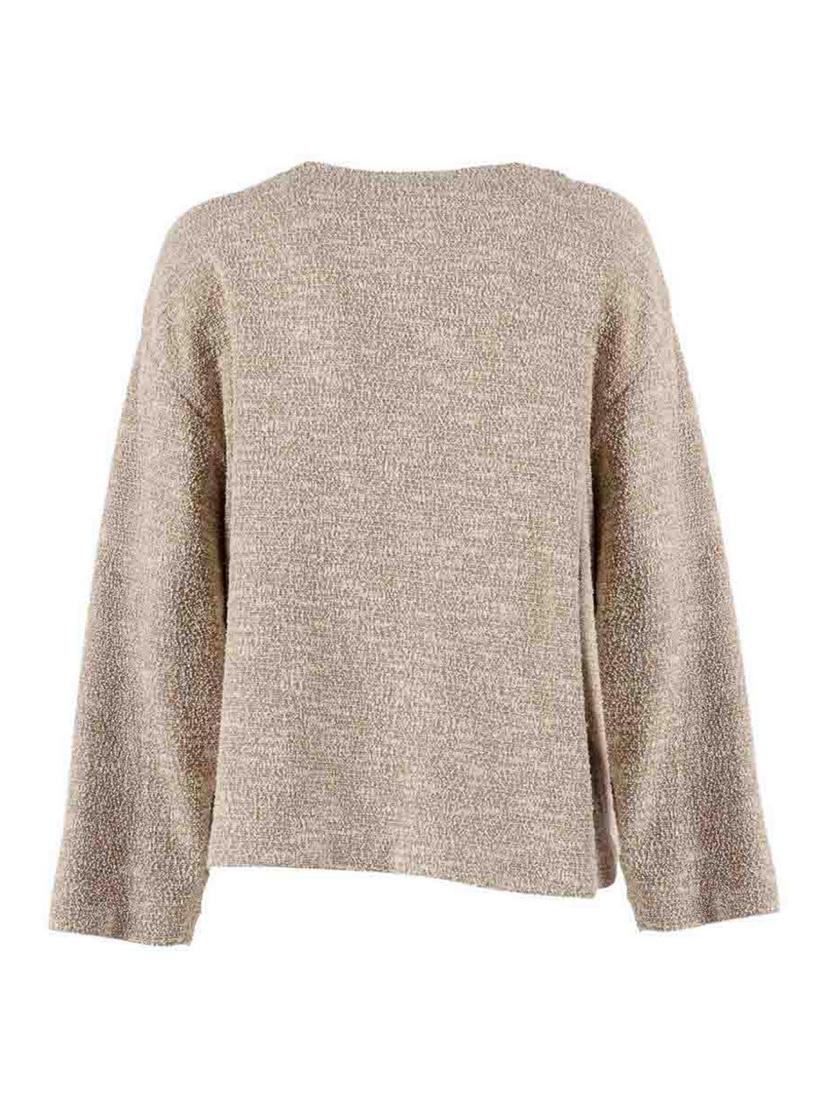 ライトブラウンのラウンドネックボタン留めパッチポケット、長袖