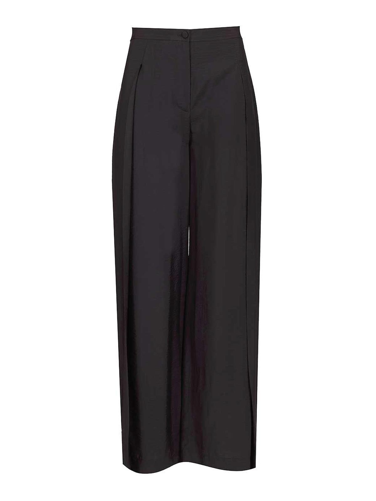エンポリオアルマーニブレンドのワイドレッグパンツテクニカルルーズフィットワイドレッグハイウエストジッパーとフックサイドスラントポケットとバックウェルトポケット