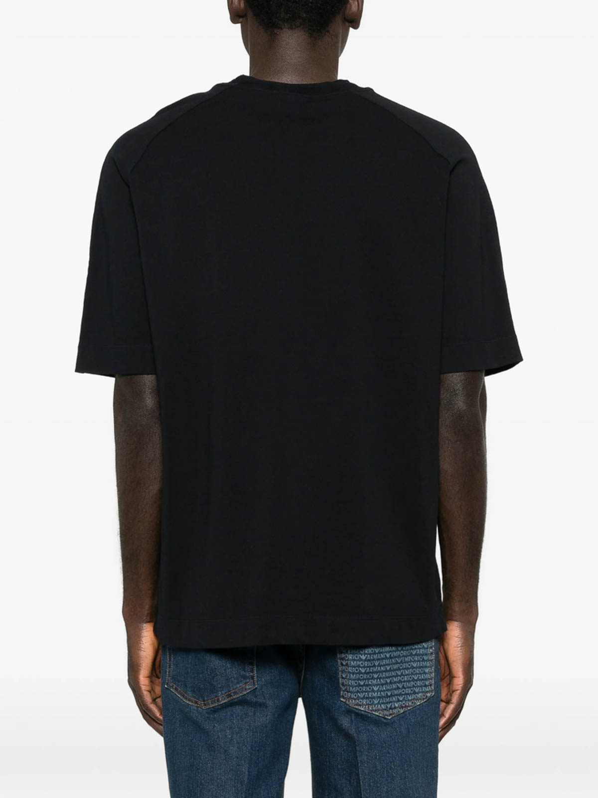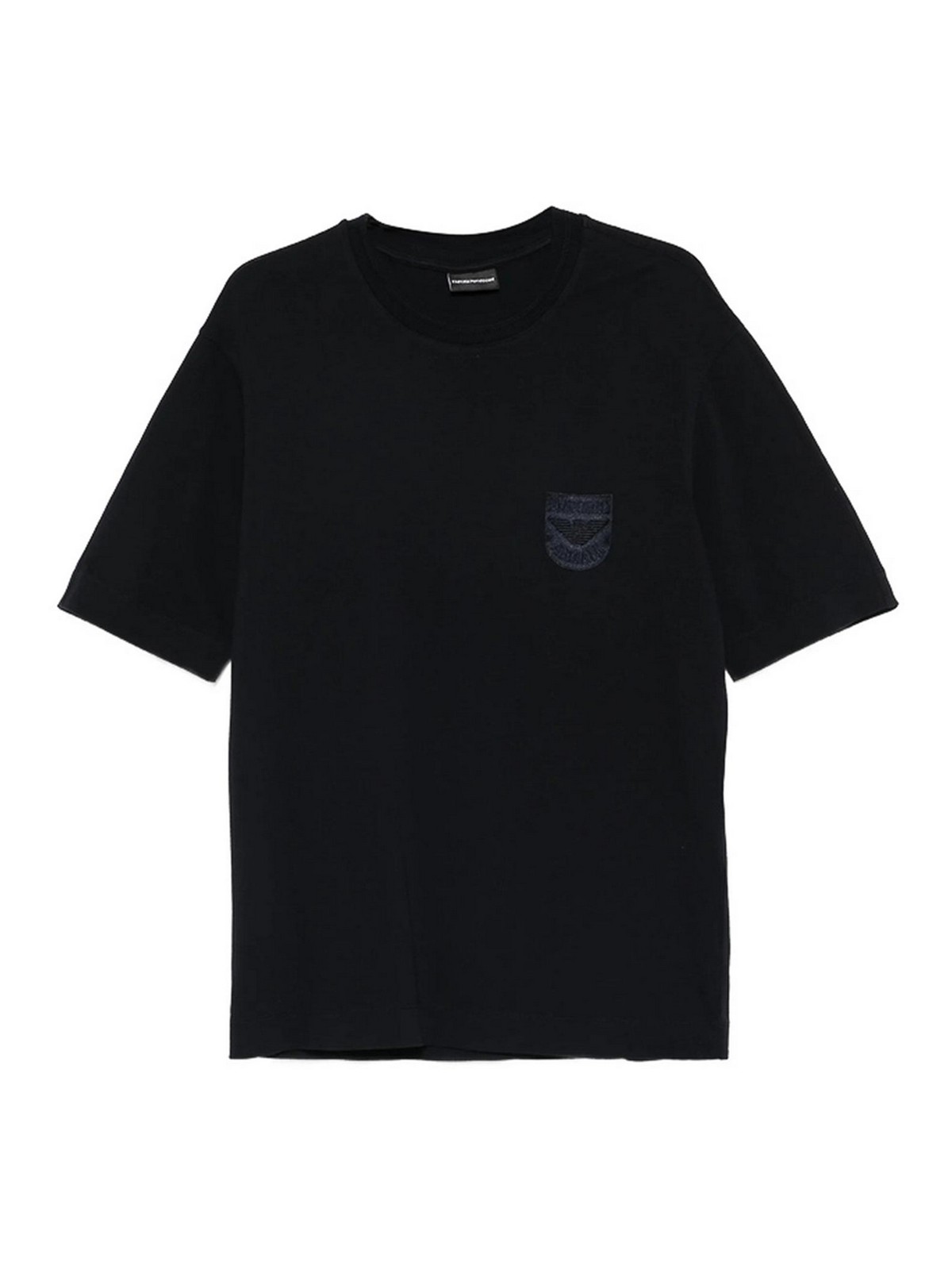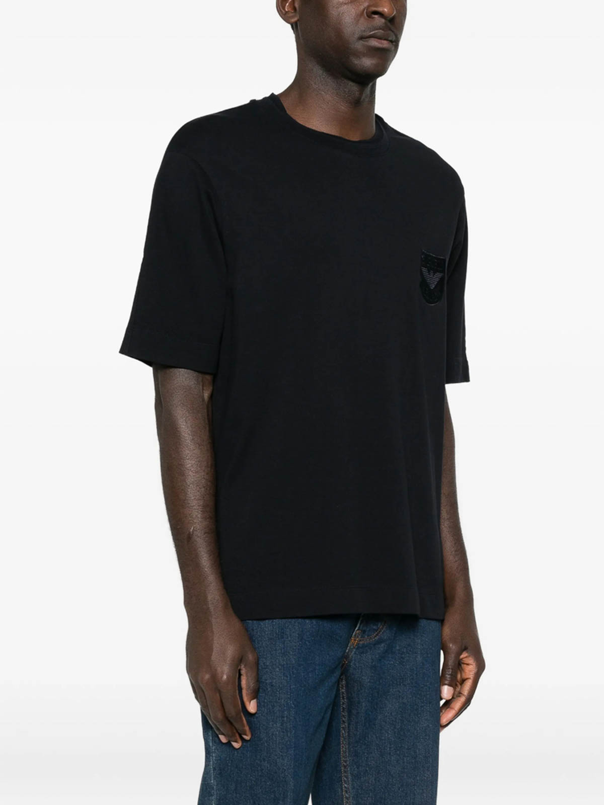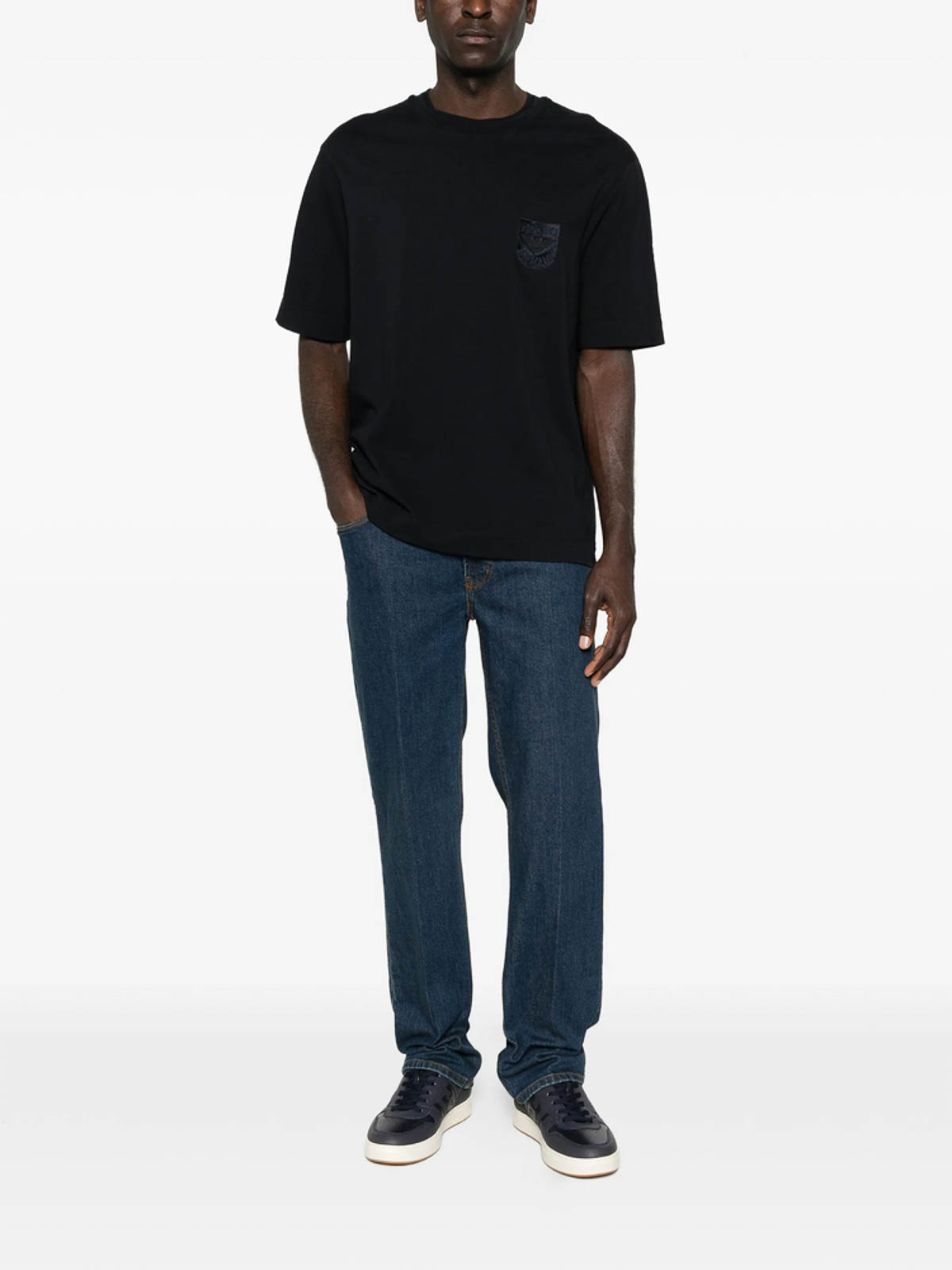 ブラッククルーネックアップリケディテールショートスリーブストレートヘム