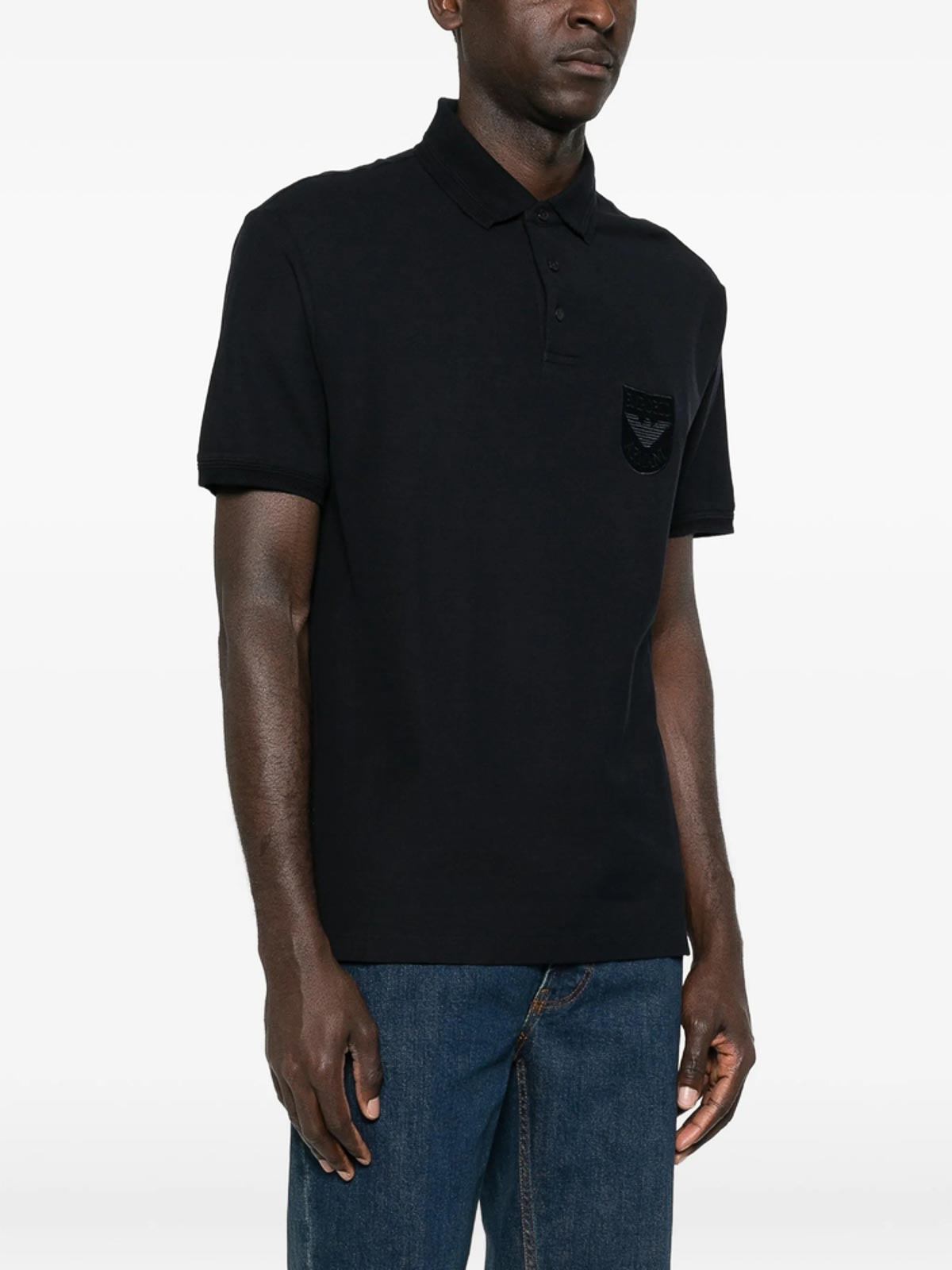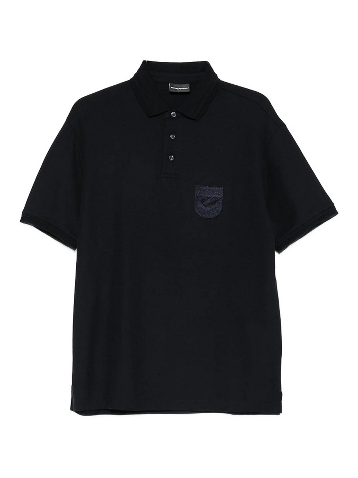 ブルーロゴパッチショートスリーブポロカラーボタン留め