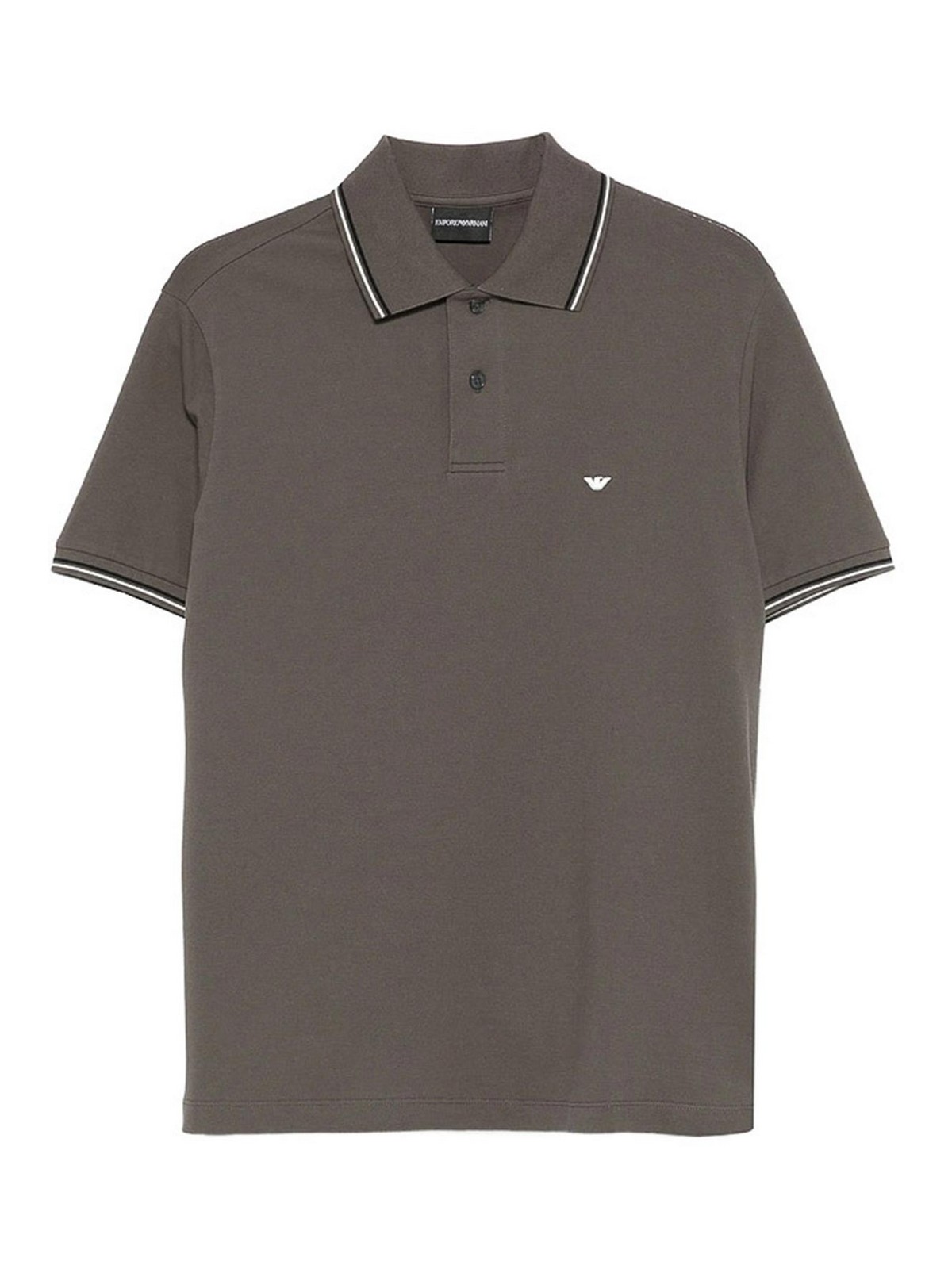 グレーロゴ刺しゅうボタン留めショートスリーブ
