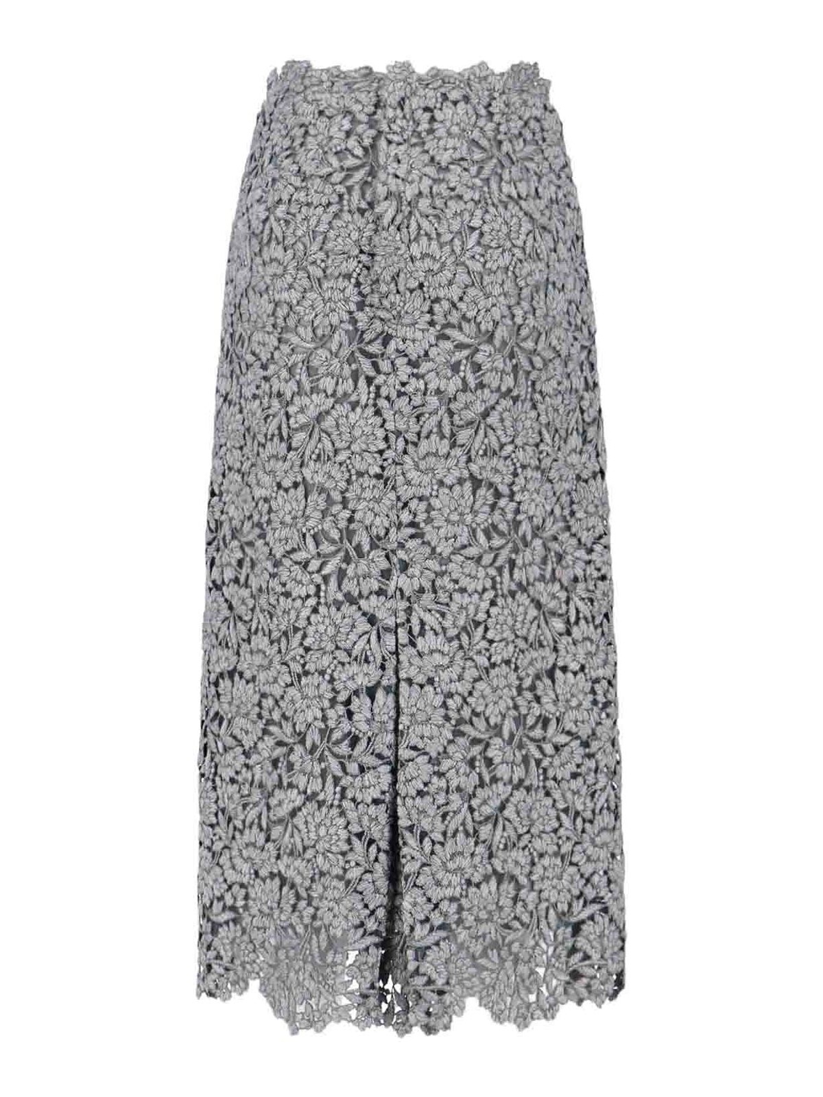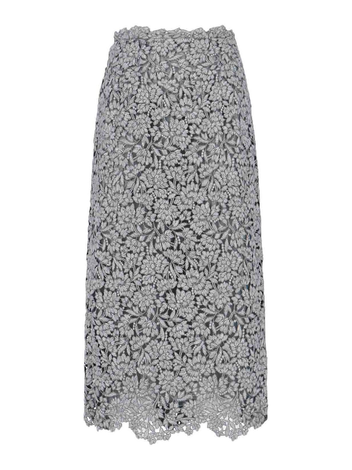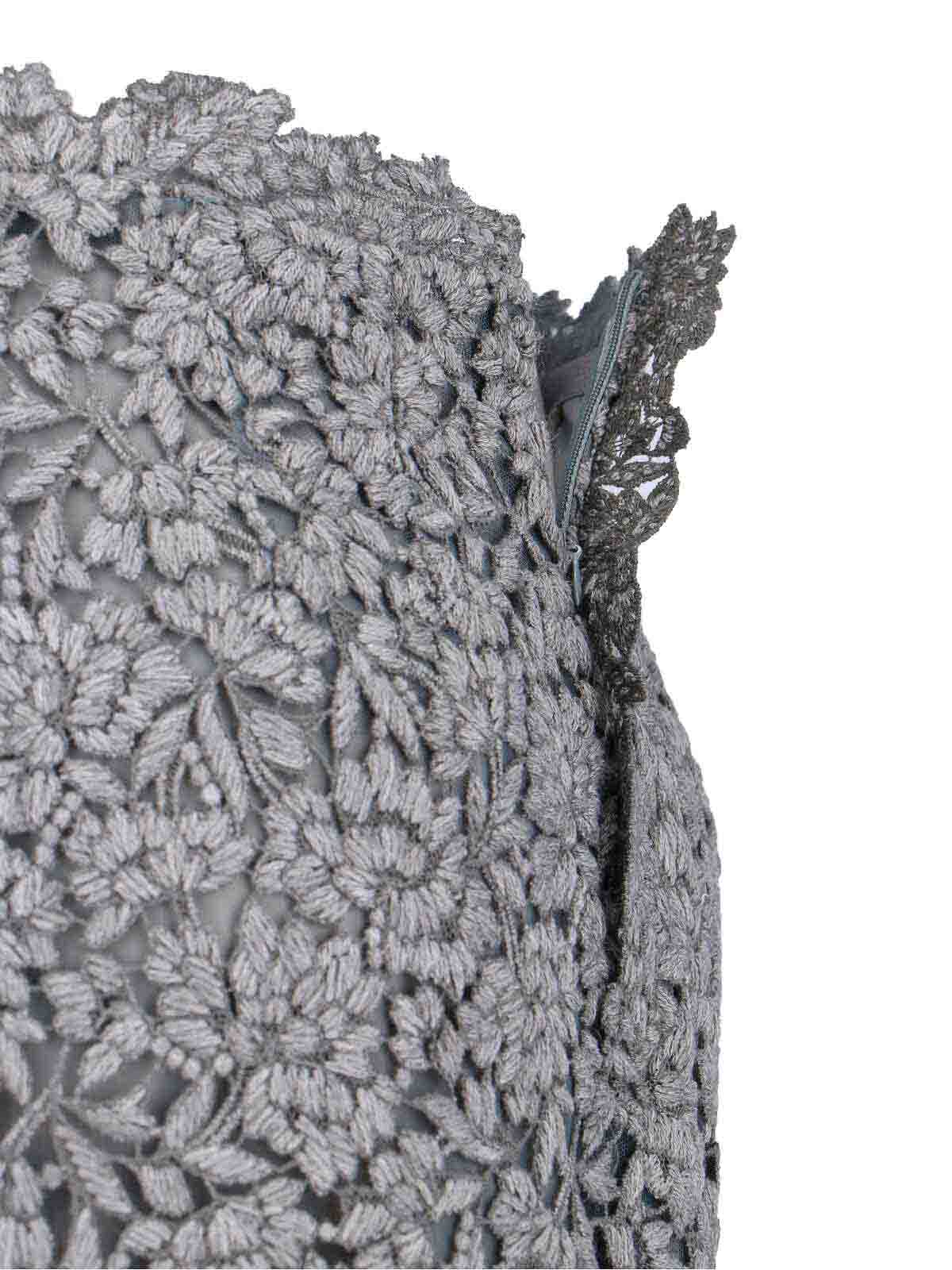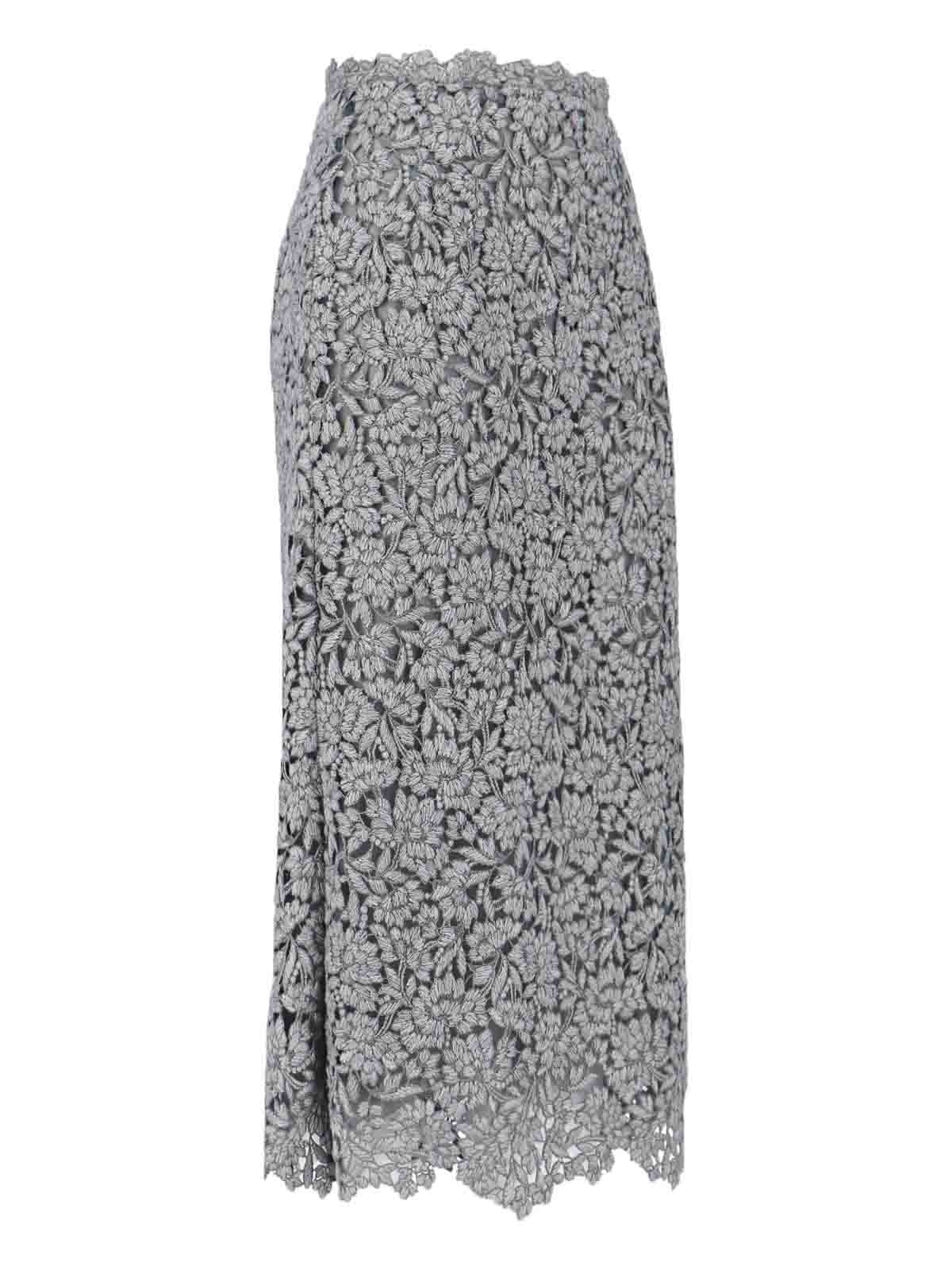 Ermanno Scervino レースのミディスカート、ミックスグレーのウールミックス、ジッパー、全面にレースのディテール、ストレートヘム。