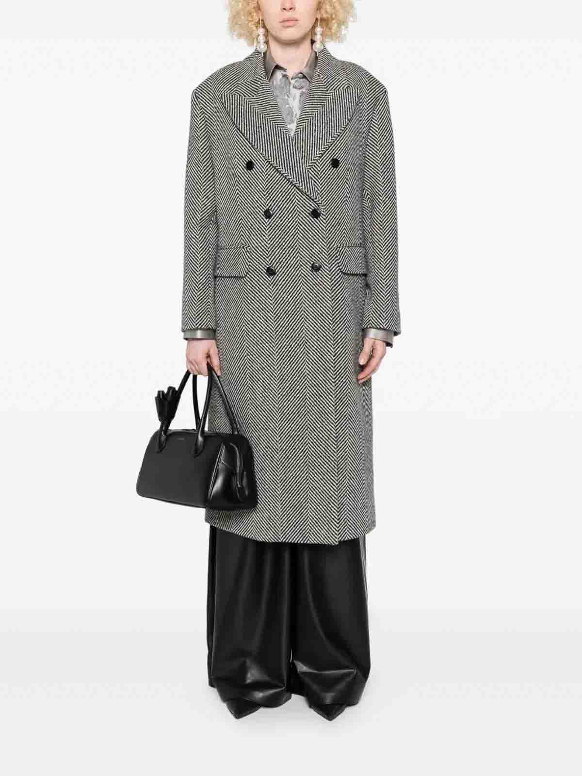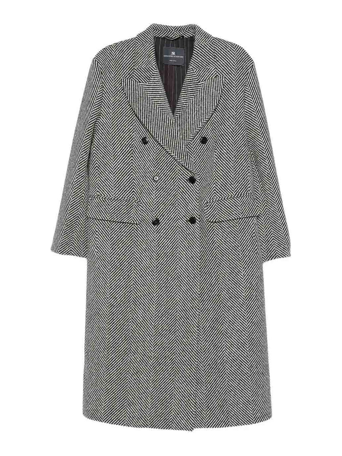 ブラックヘリンボーン柄ダブルブレストピークドラペルロングスリーブウェルトポケット