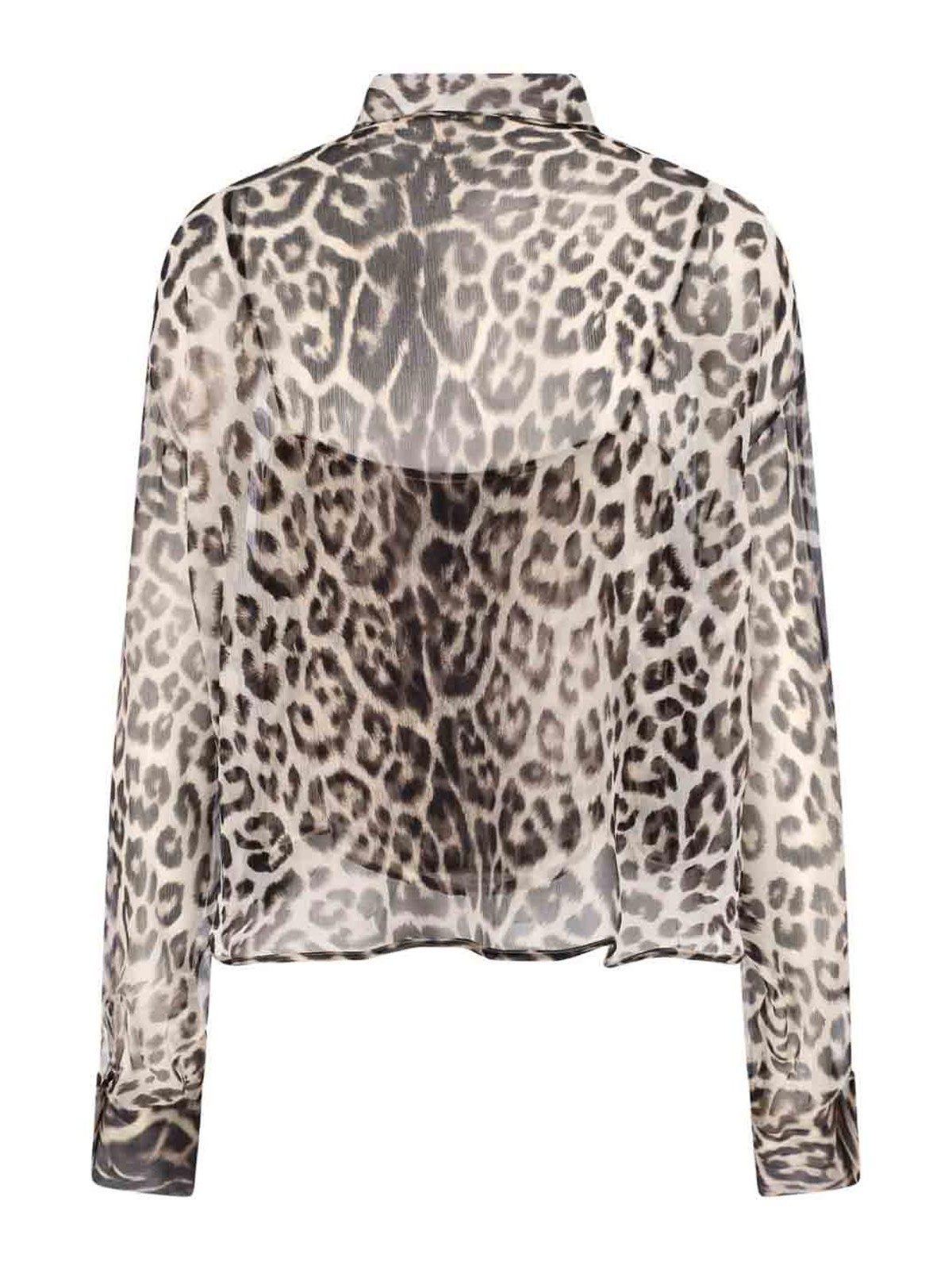 Ermanno Scervino シルクシャツ、ブラウン、アニマリエモチーフ、クラシックカラー、ボタンクロージャー、ロングスリーブ、下にタンクトップ、ボタン付きカフス、ストレートヘム。