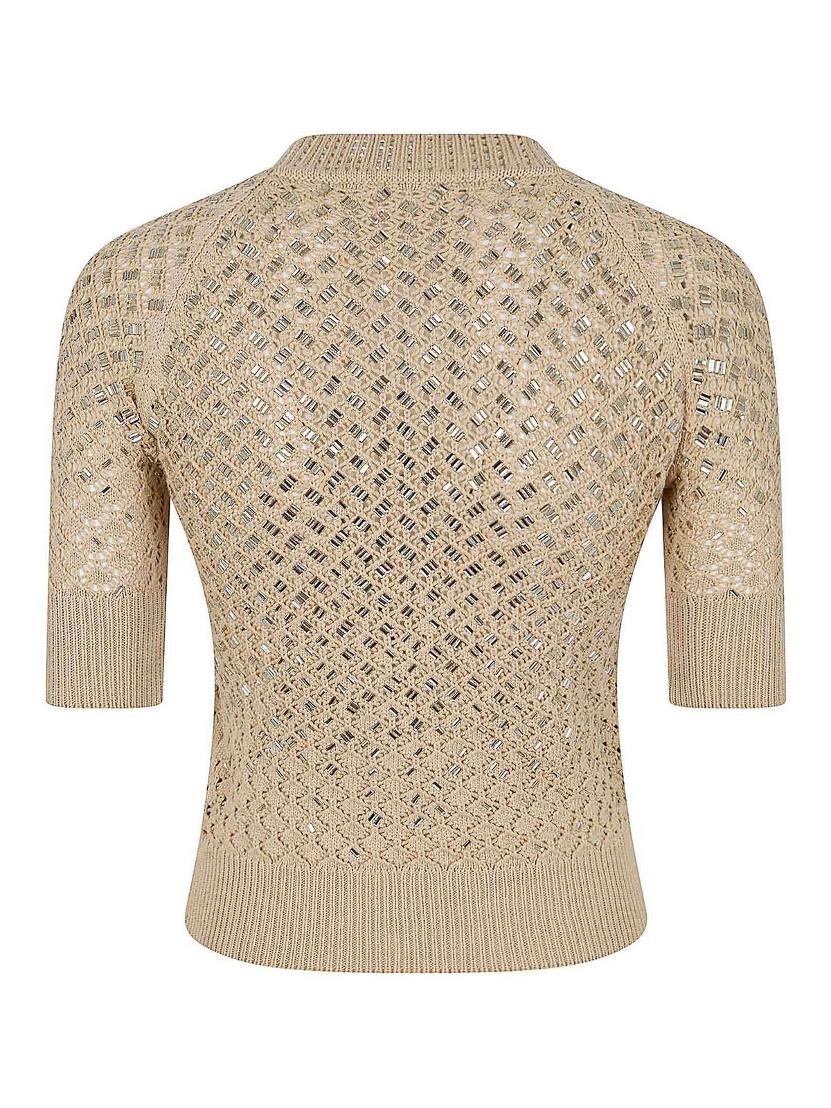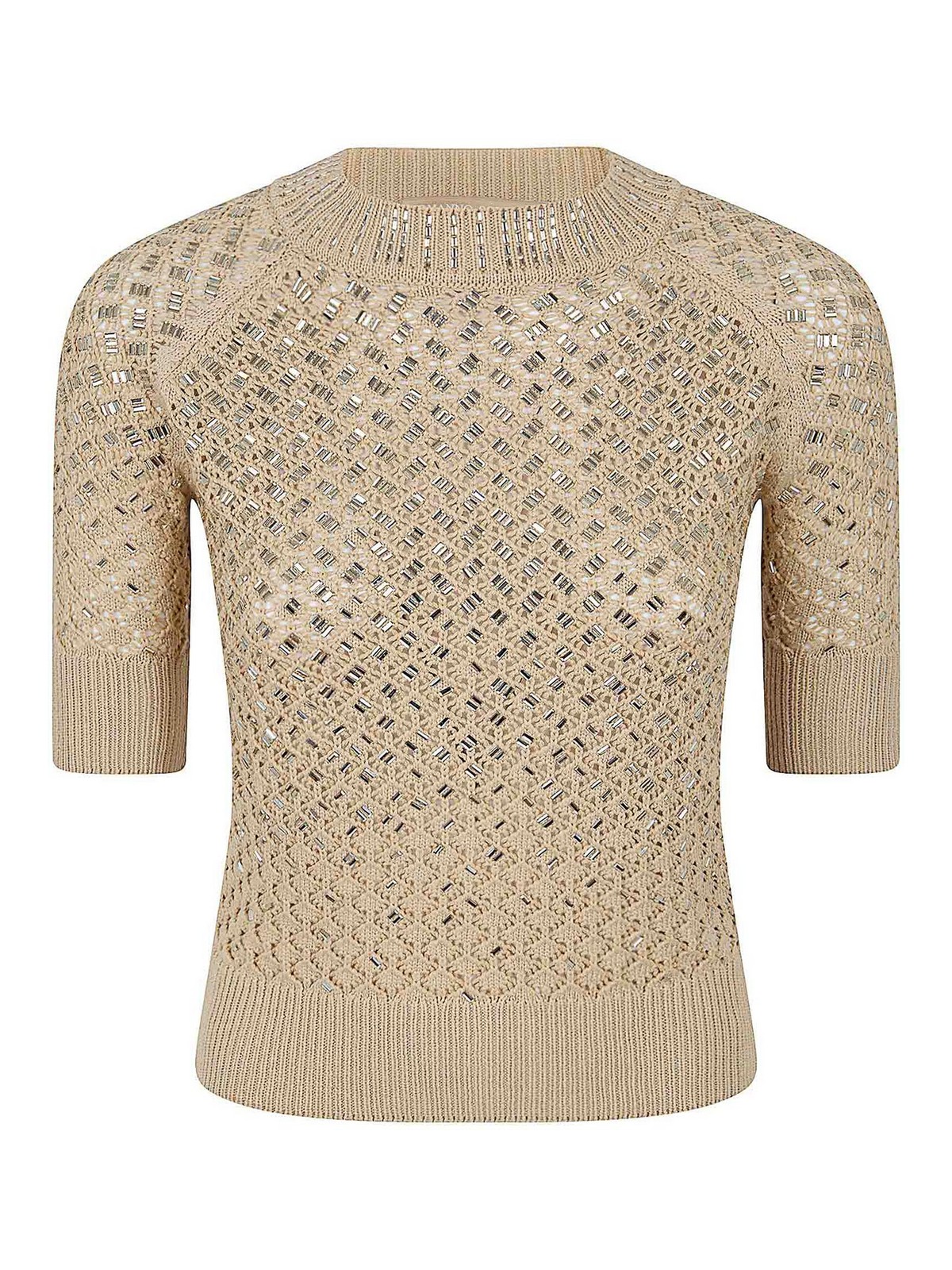 ermanno scervinoのニットトップ、ハーフクルーネック、クルーネック、袖と裾はリブ編みの伸縮性のあるデザインで、手作業で装飾して体の形にぴったりとフィットします。