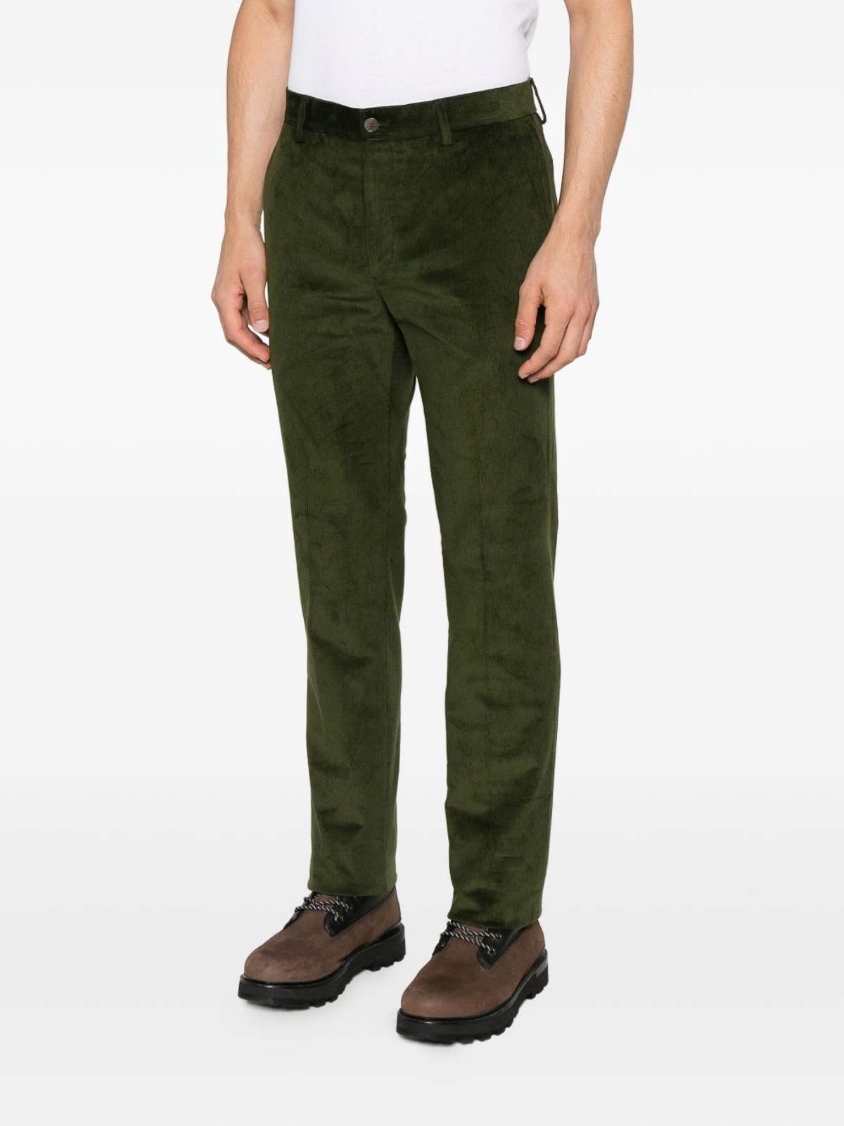 etroのモスグリーンリブパンツ