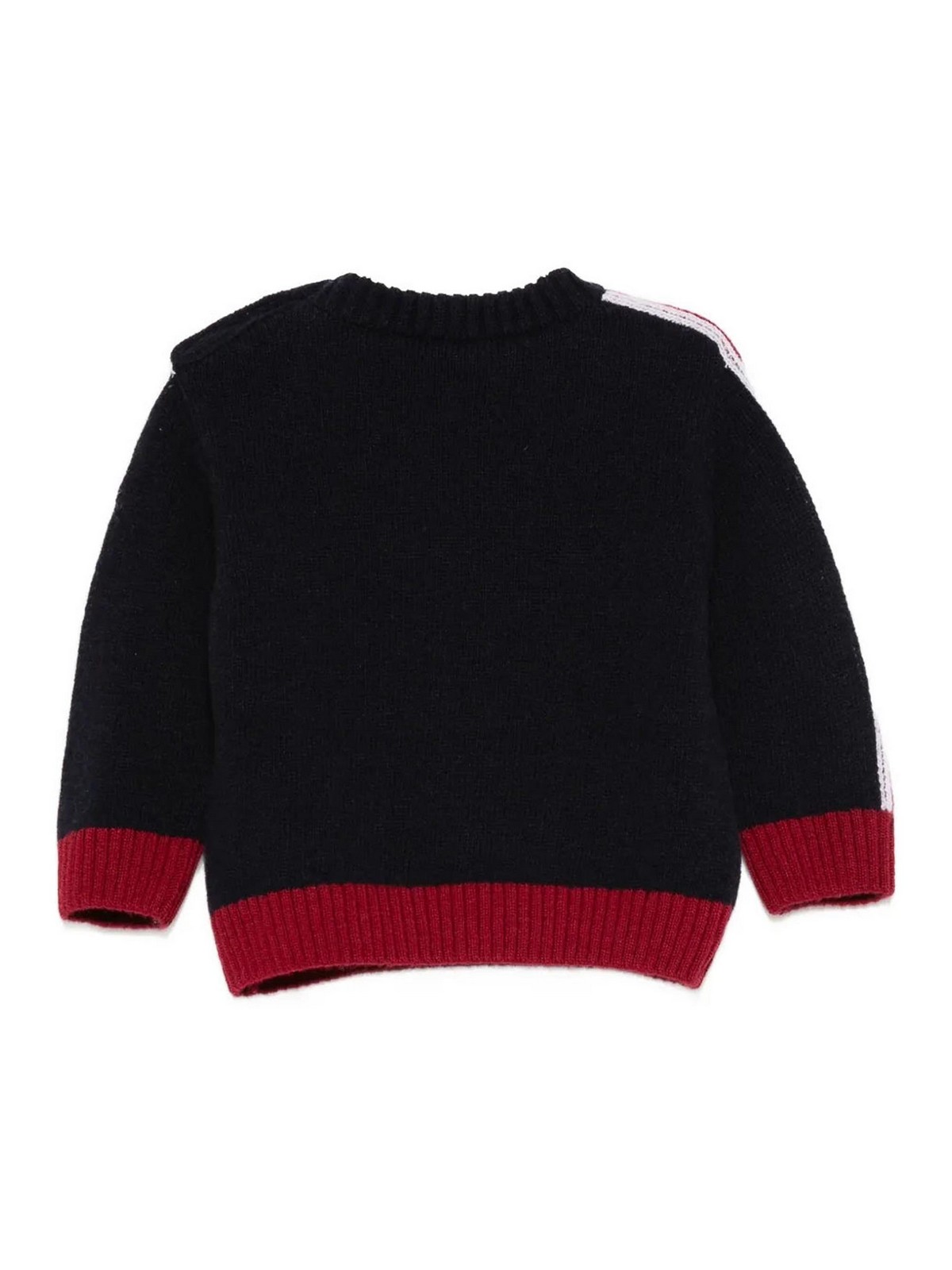 ペガサスモチーフのセーターは、青いペガサスモチーフリブ付きヘムロングスリーブクルーネックが特徴です。