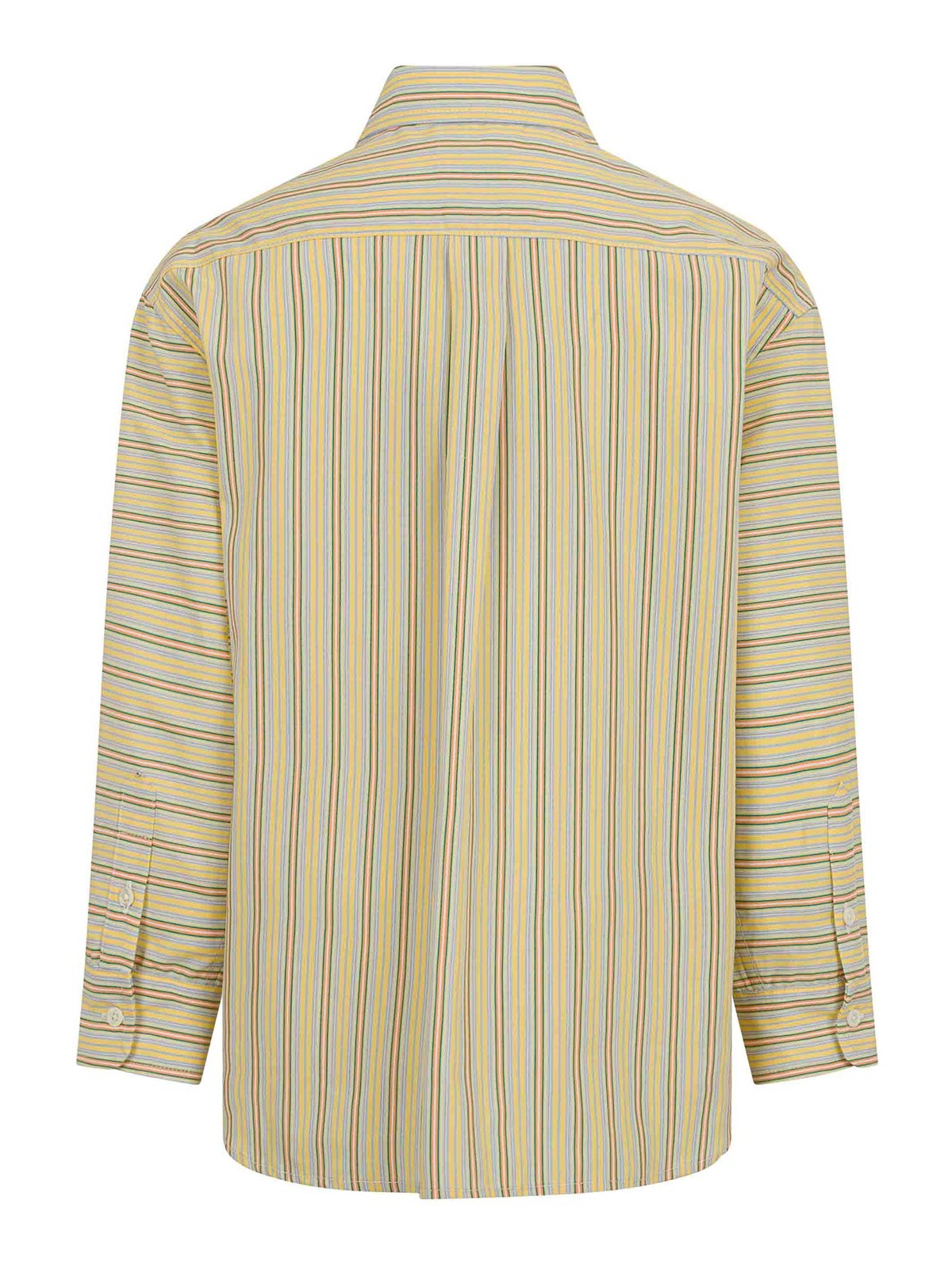長袖ペガソボタンとパッチポケット付きイエローストライプシャツ