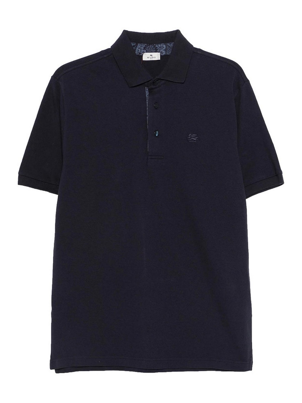 ネイビーブルーのロゴ刺しゅうボタン留めショートスリーブ