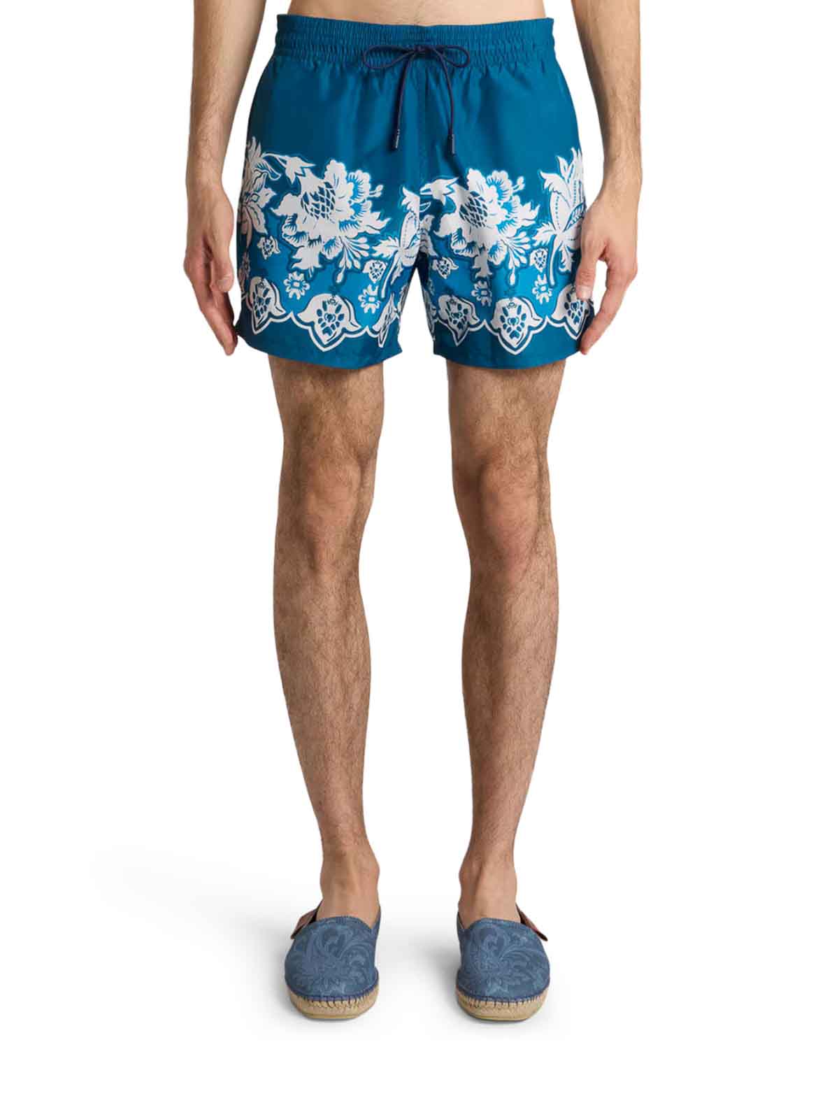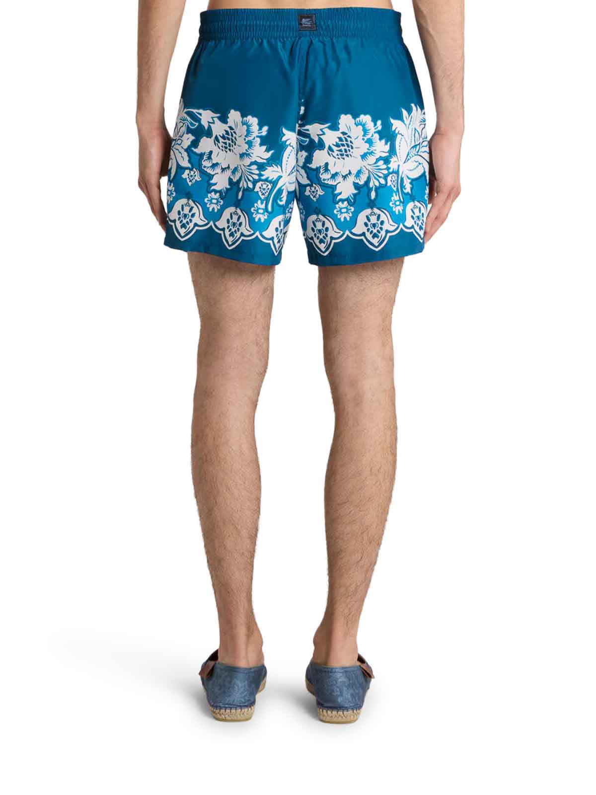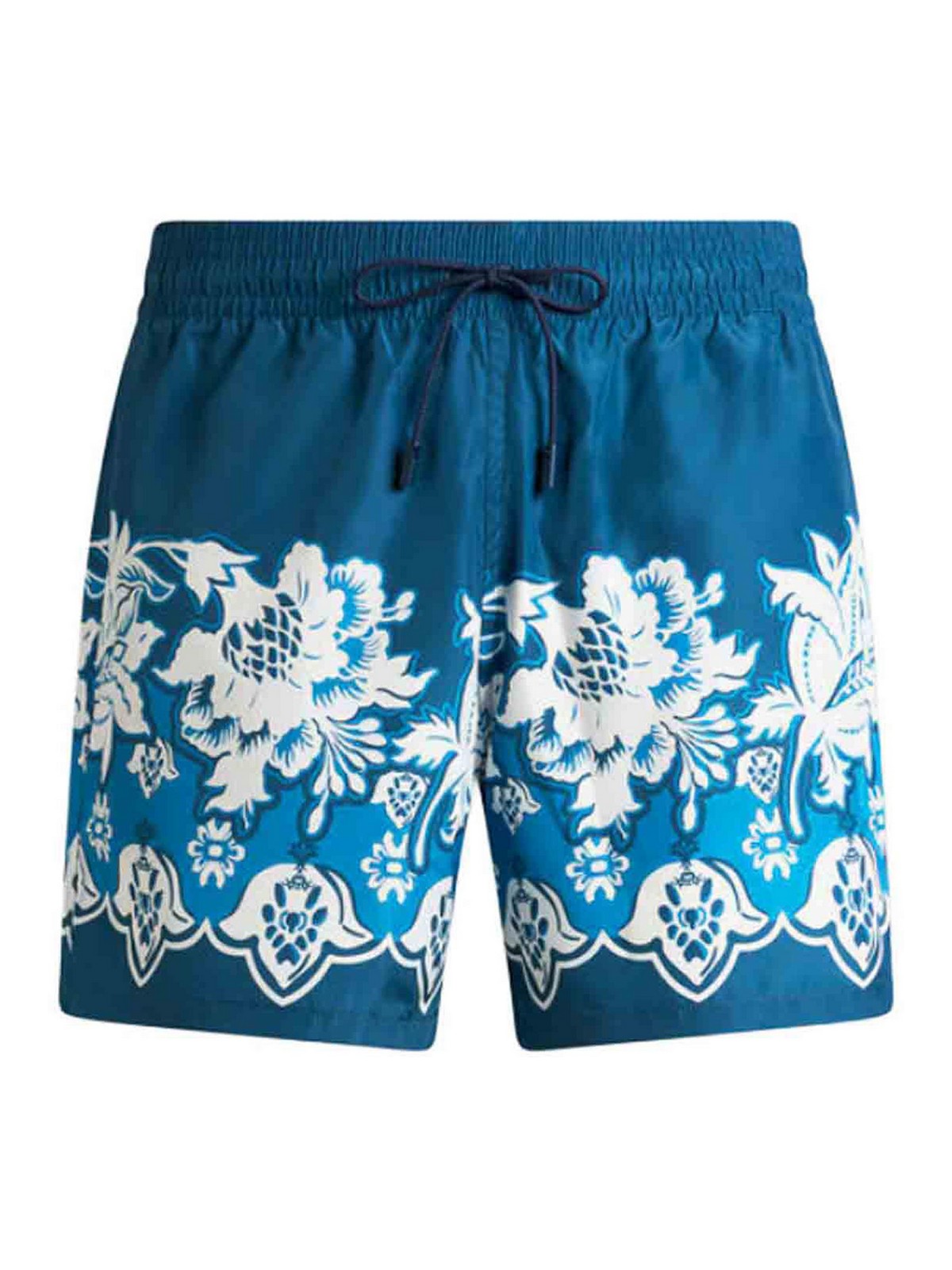 テクニカルファブリック製のスイムショーツ、花柄の装飾、背面にペガサスのロゴラベル、レギュラーフィット、ドローストリング付き伸縮性ウエスト、サイドポケット、色:ブルー