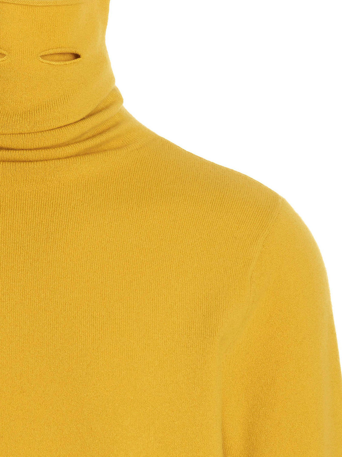カシミヤのハイネックバラクラバセーター、アイホールと長い袖口付き。