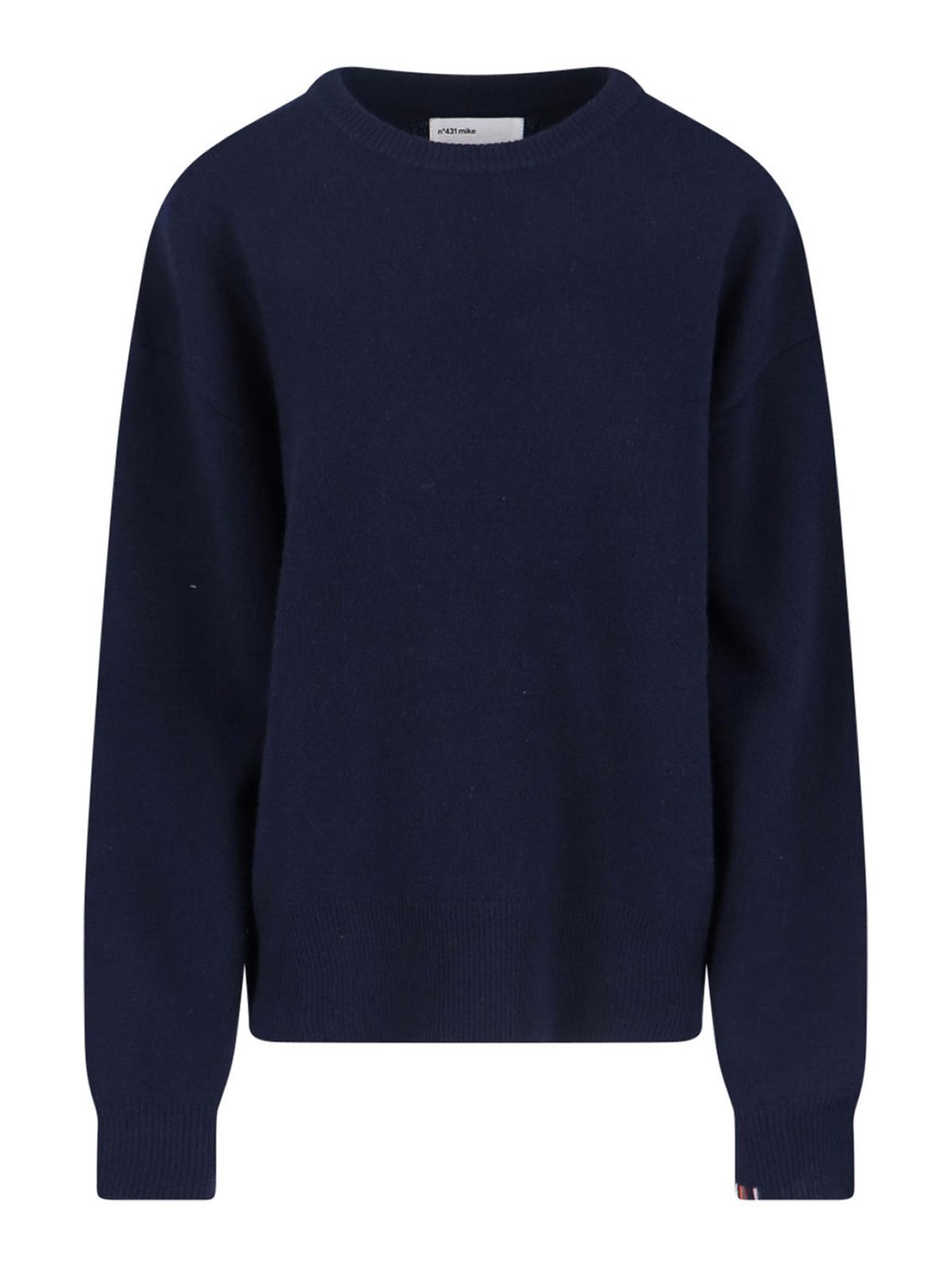 ブルーカシミア混紡431マイクエクストリームカシミアセーター、ネイビーシェード、ニット、クルーネック、ロングスリーブ、リブ仕上げ、ストレートヘム。