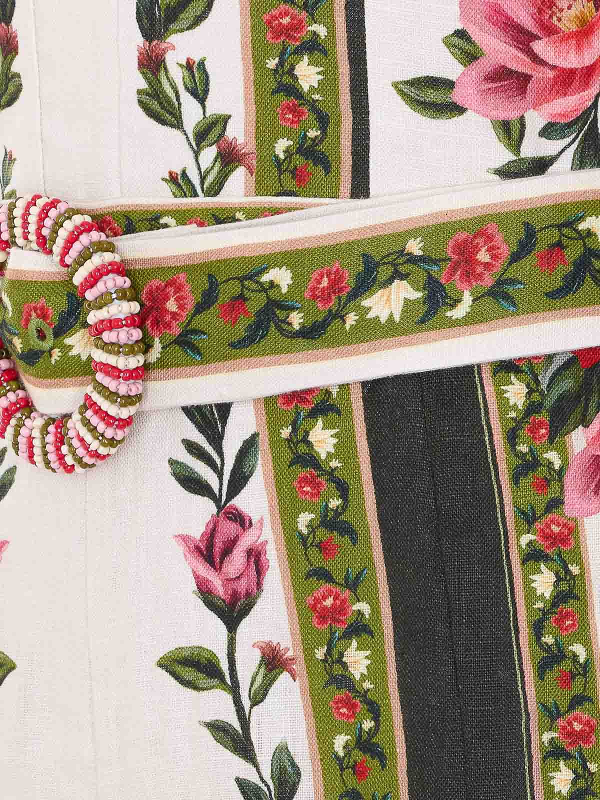ジャンプスーツ:ファームリオマルチカラーワンダーリオサンド、背面にファスナー付き、花柄プリント、ウエストにベルト、ハートネック、花柄プリント