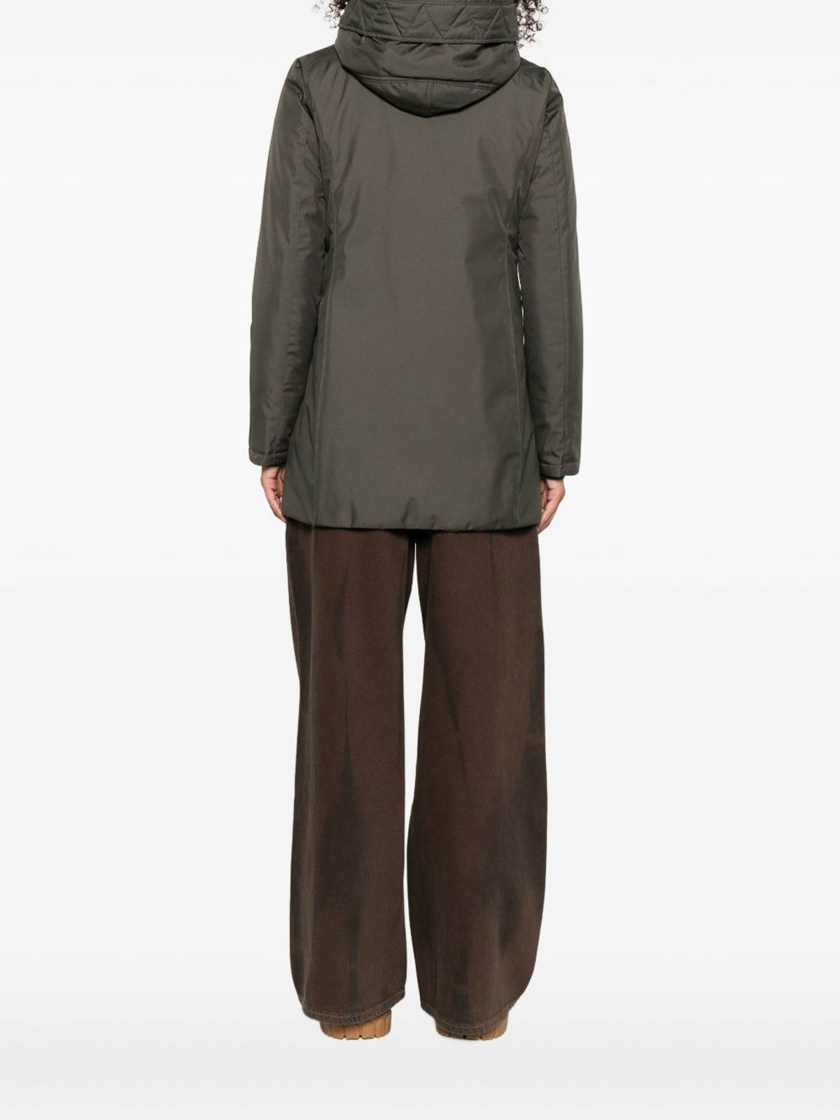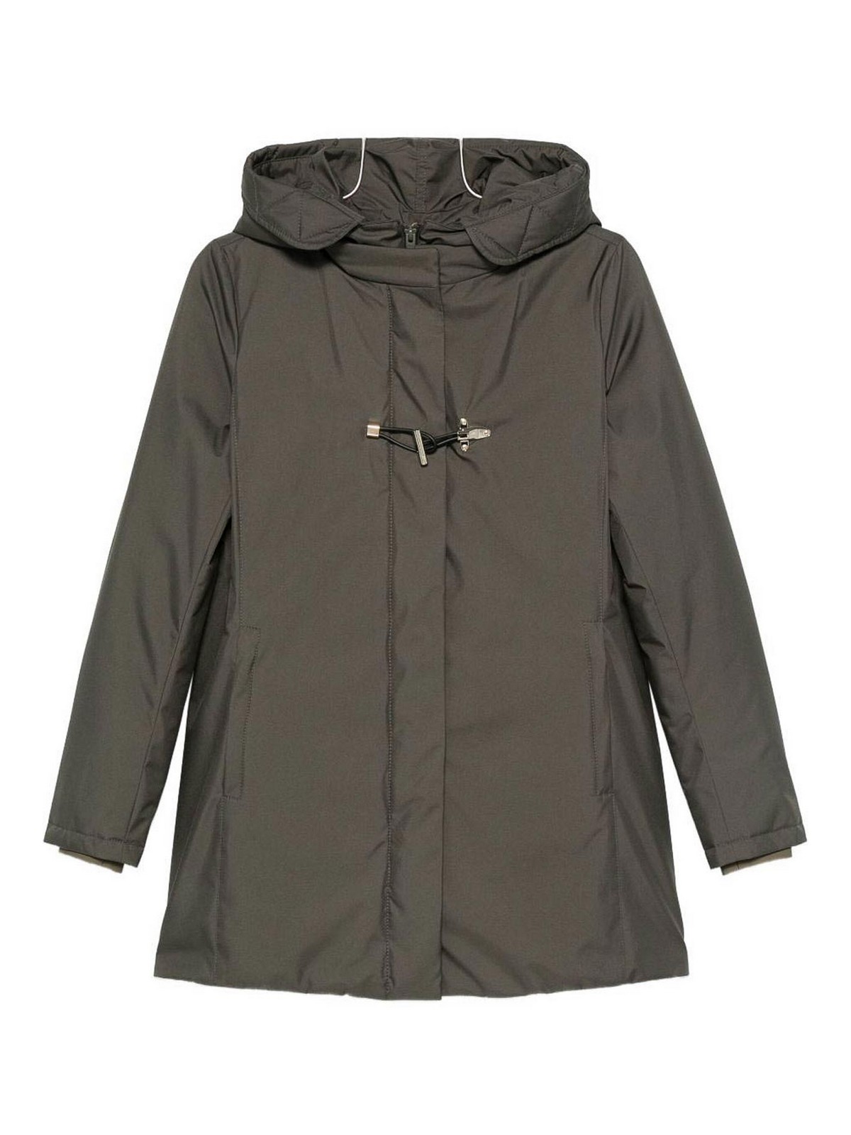 グリーンフード付きネックライントグル長袖ウェルトポケット