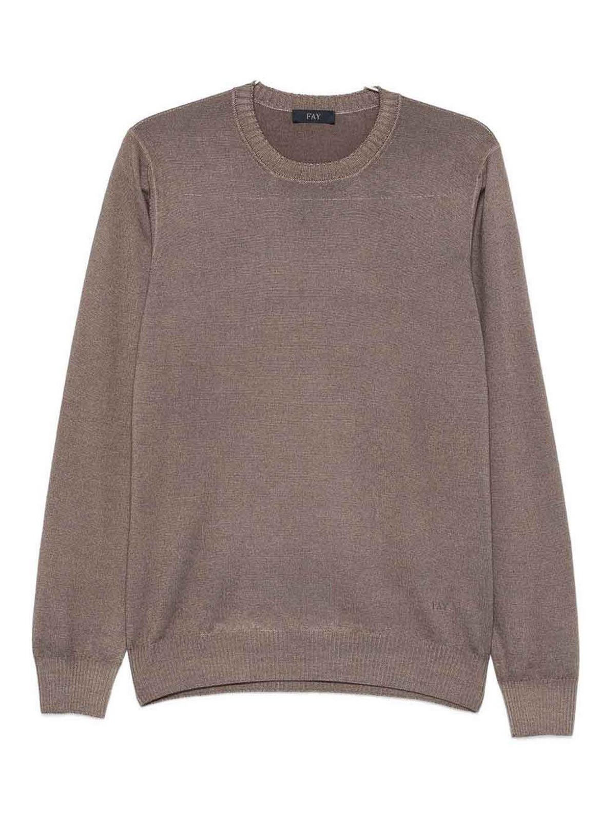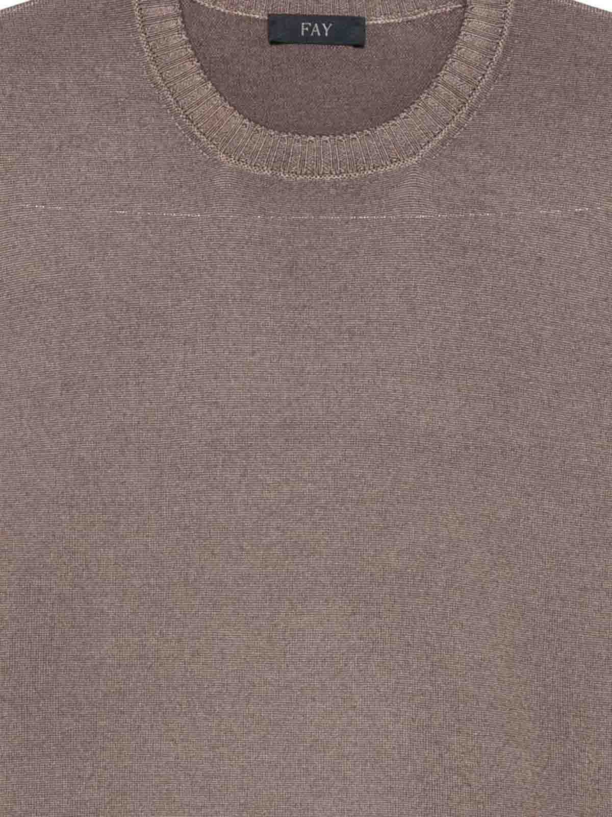 ベージュクルーネック長袖リブ編みカフスリブ編みのヘム