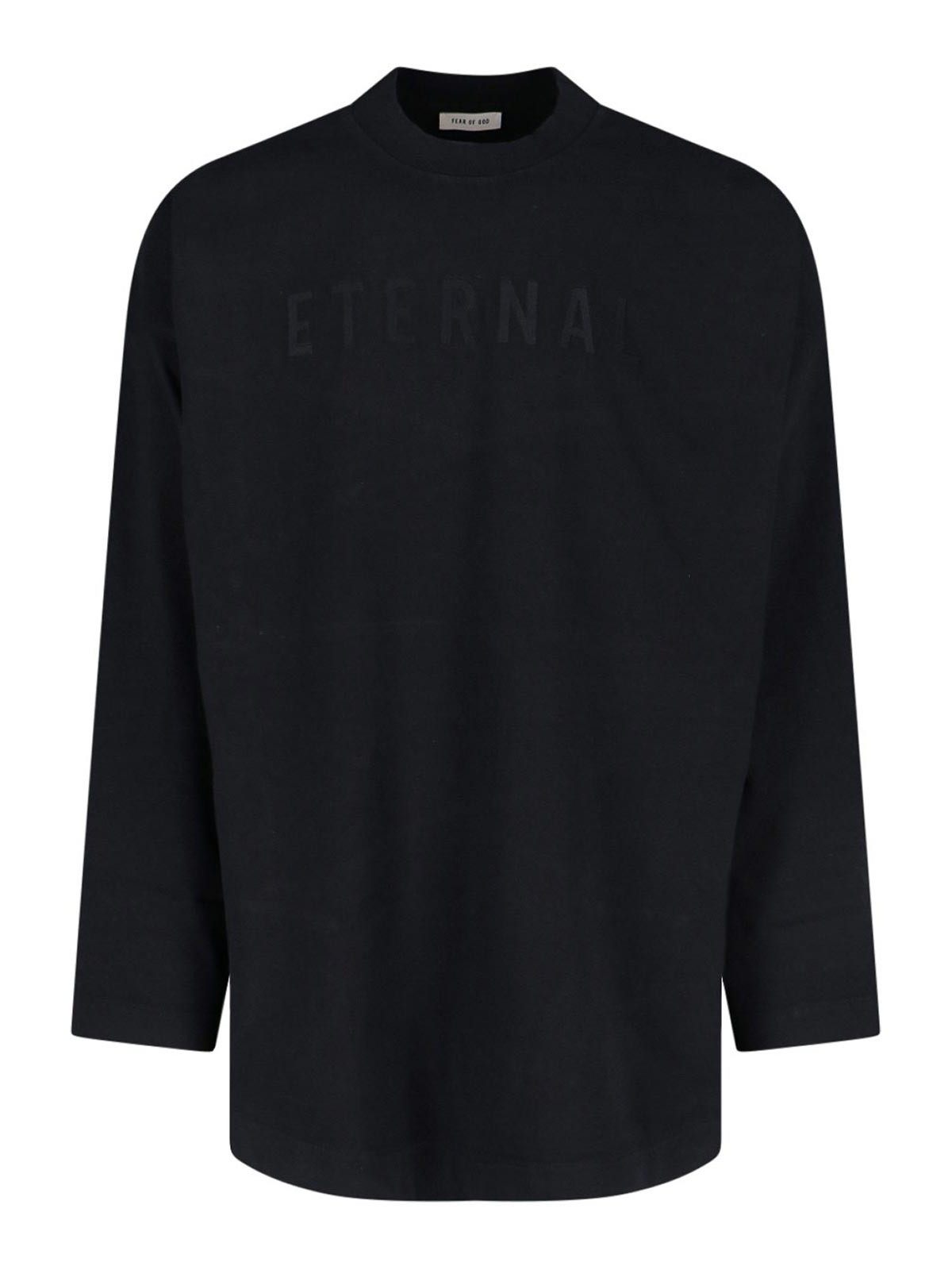 Eternal Tシャツ Fear of God Black HIGOL LONG SLEEP LOGO ロゴ胸元にトーンオントーンラベルロゴレトロコスティーヌ仕上げストレートエッジ