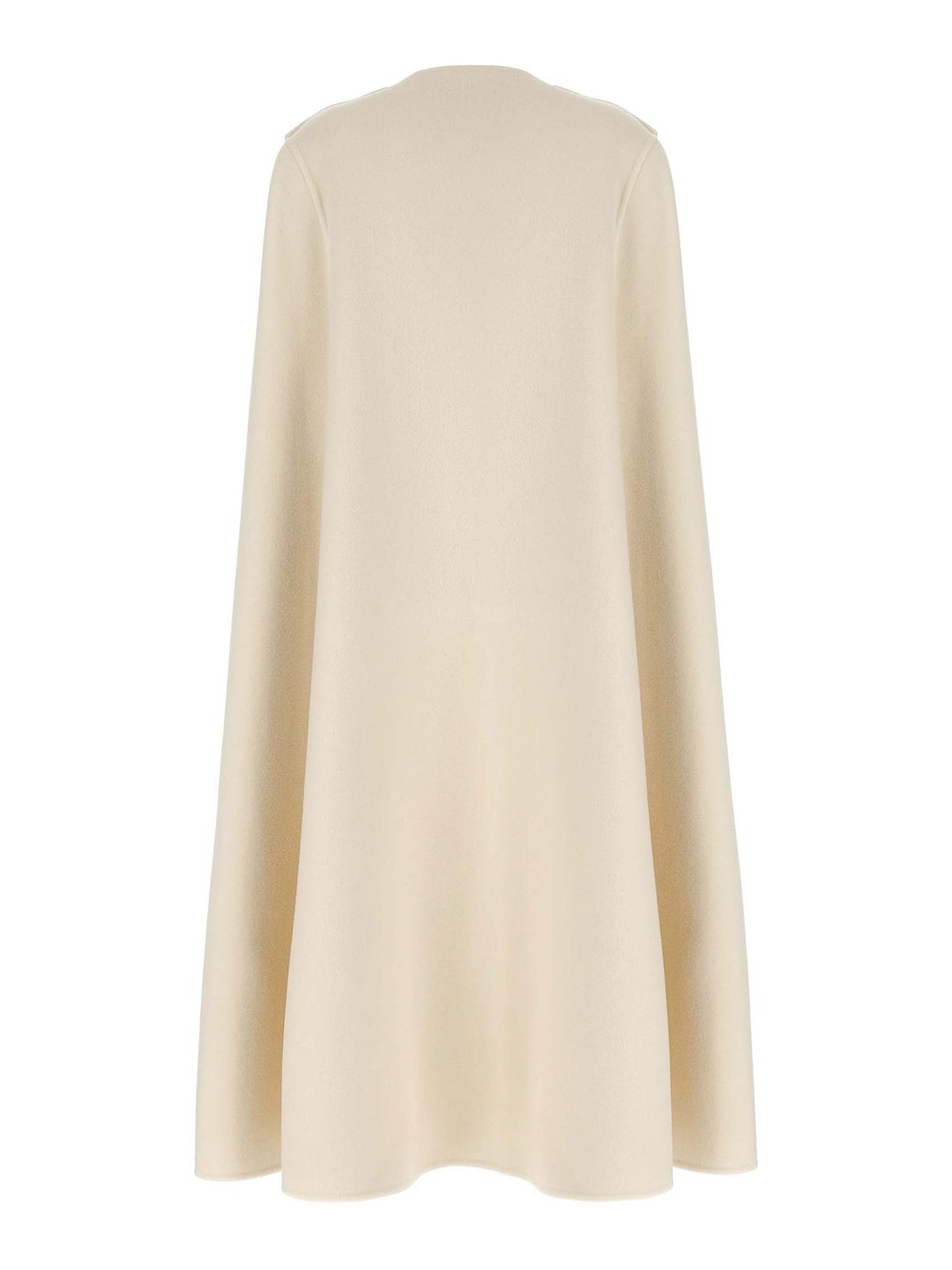 バージンウール混紡のクルーネックケープ。前面のスナップボタン留めと腕を通すスリットが入ったウォレットスタイル。