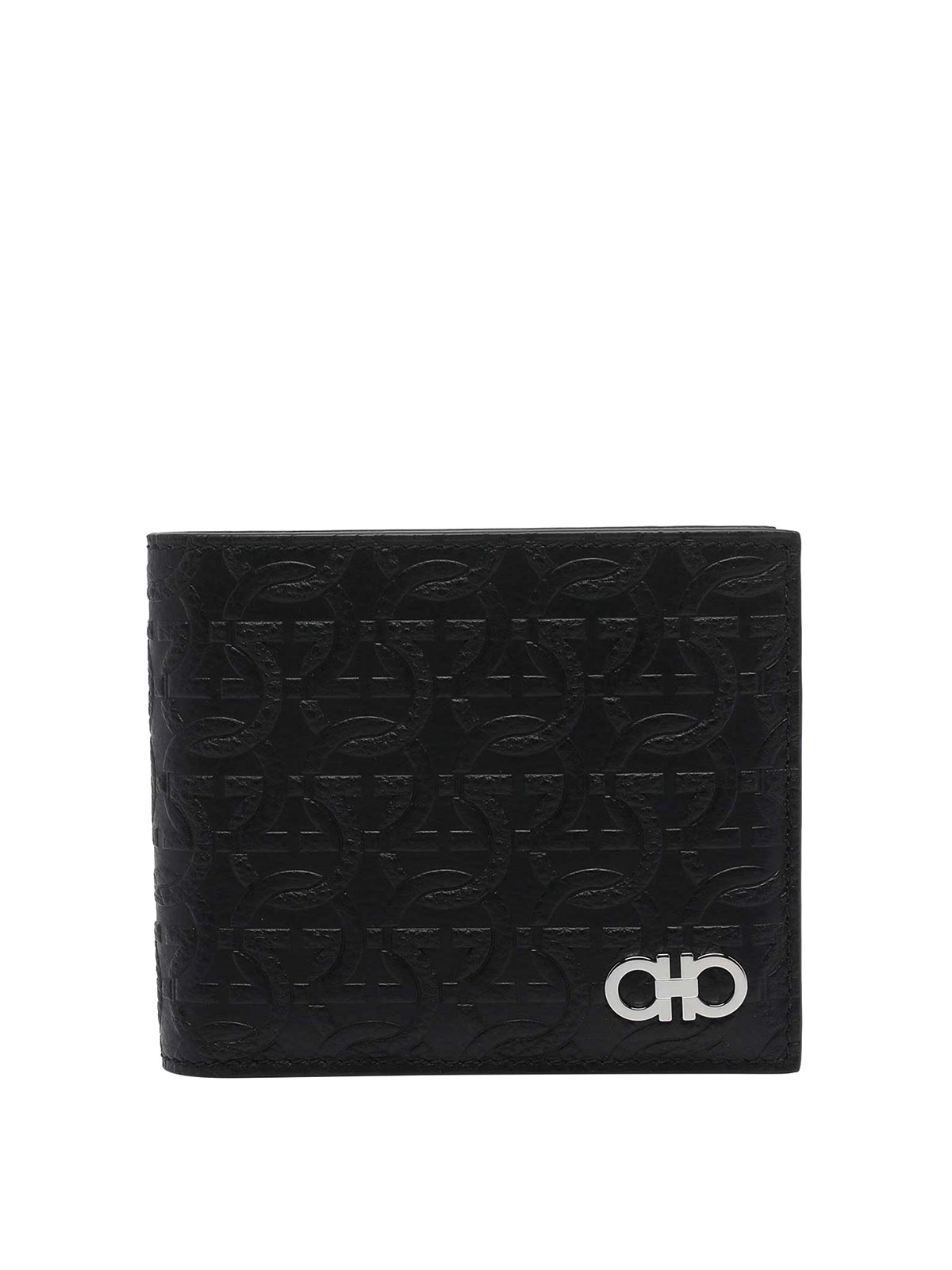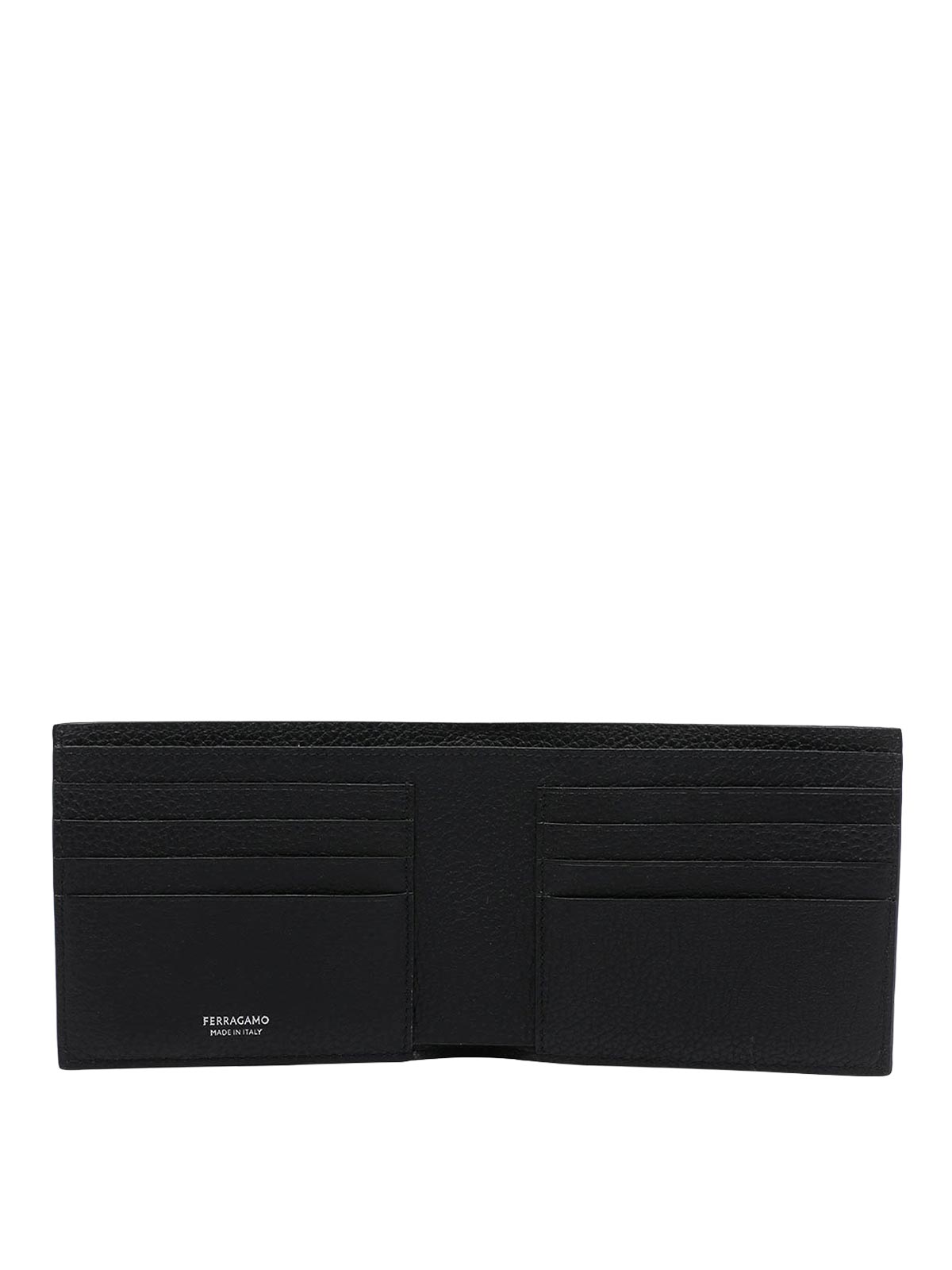 フェラガモブラックウォレット、8スロット、紙幣用コンパートメント1つ、ロゴ