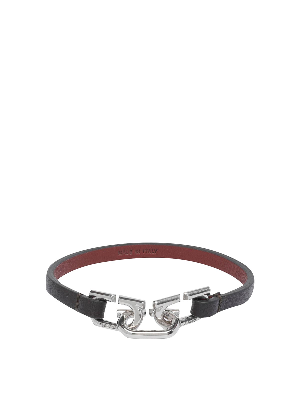 フェラガモブラックガンチーニブレスレット、ガンチーニフッククロージャー、レザーモデル