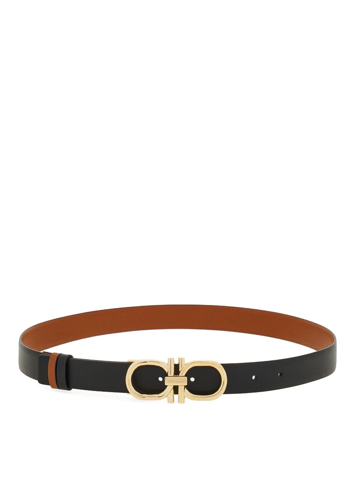 ブラックリバーシブルデザイン長さ調節可能なダブルガンチーニバックルワイヤーディテールスリムプロファイル