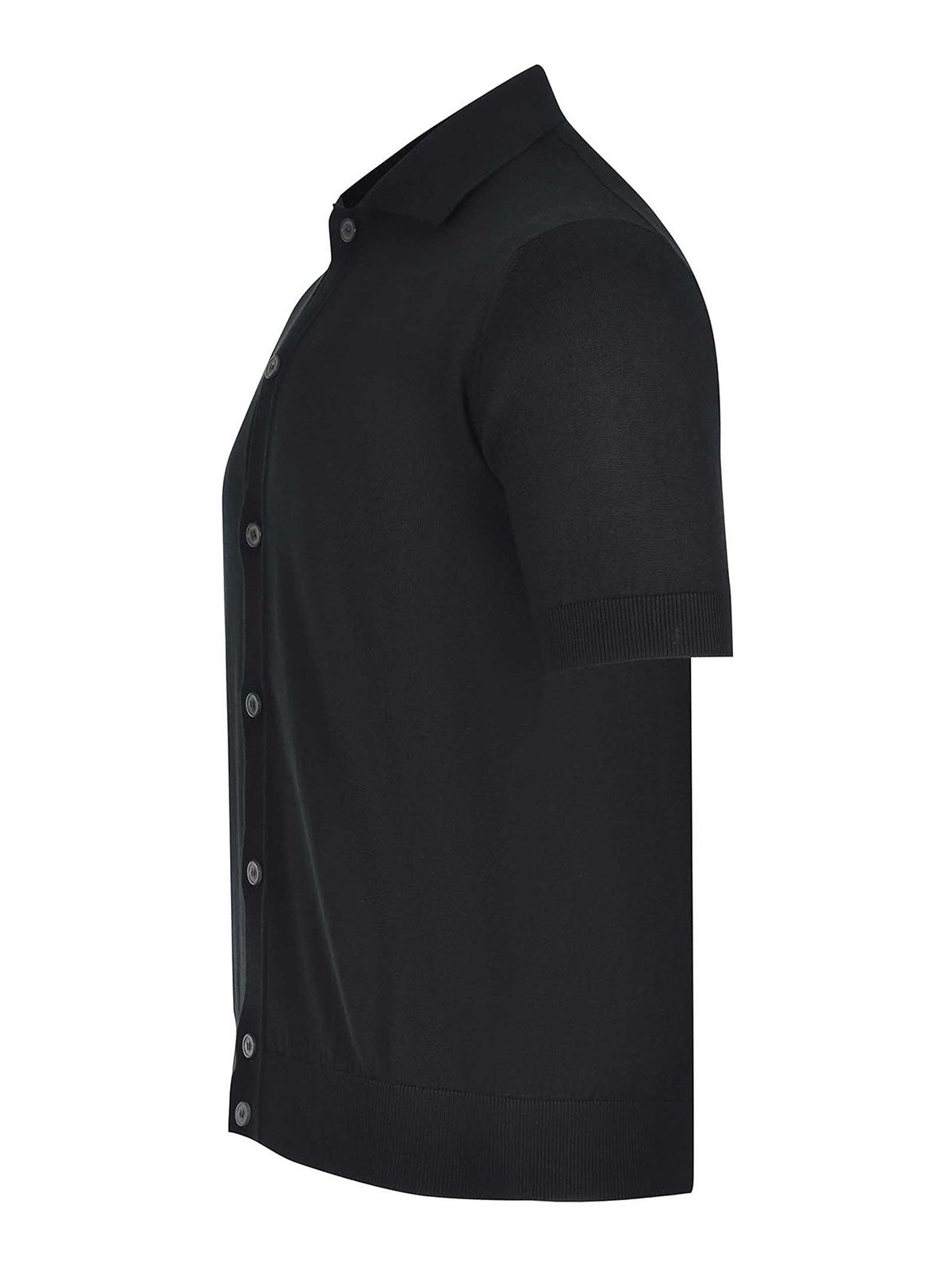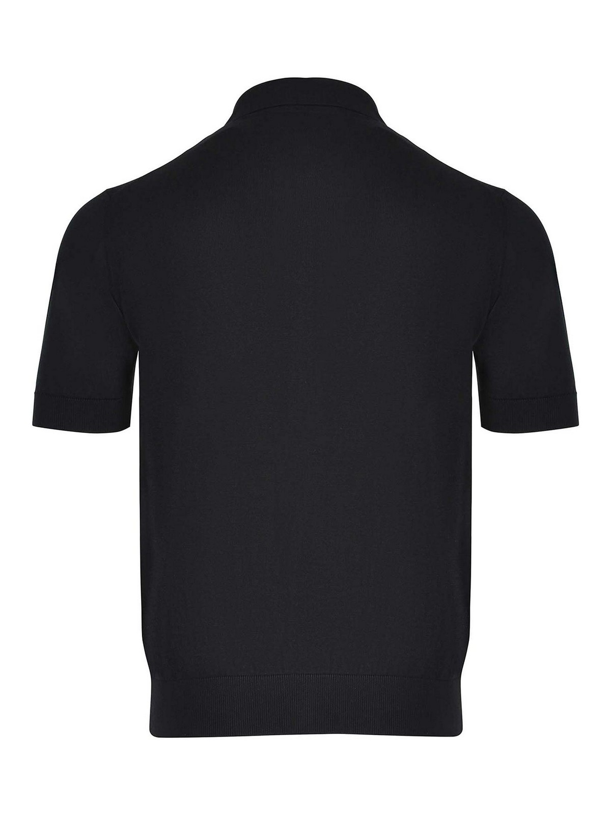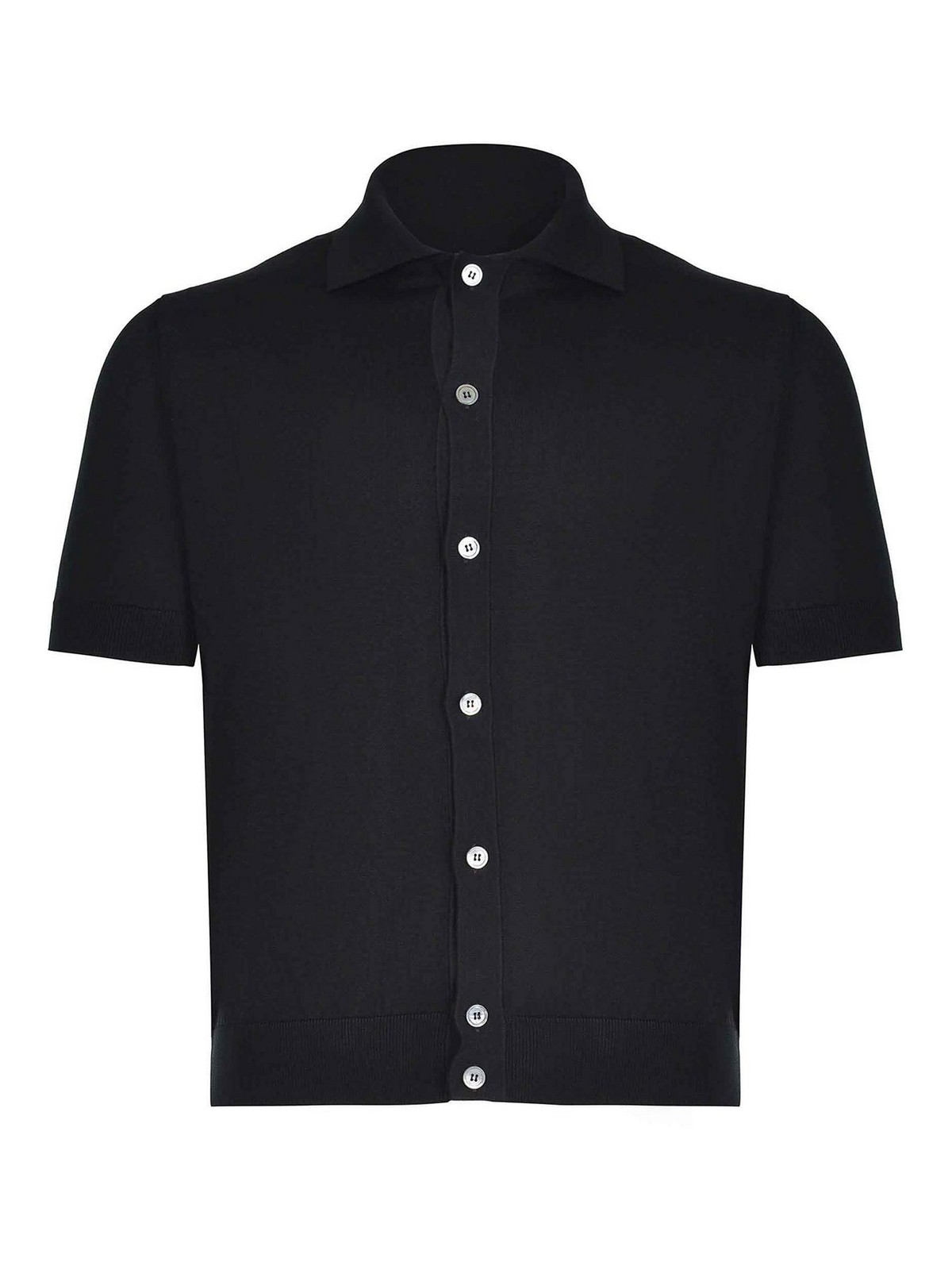 Filippo de laurentiis ポロシャツ、ブラックコットンピク、クラシックなリブ編みの襟、ボタンフロントクロージャー、半袖。リブ編みの裾、100% コットン、イタリア製