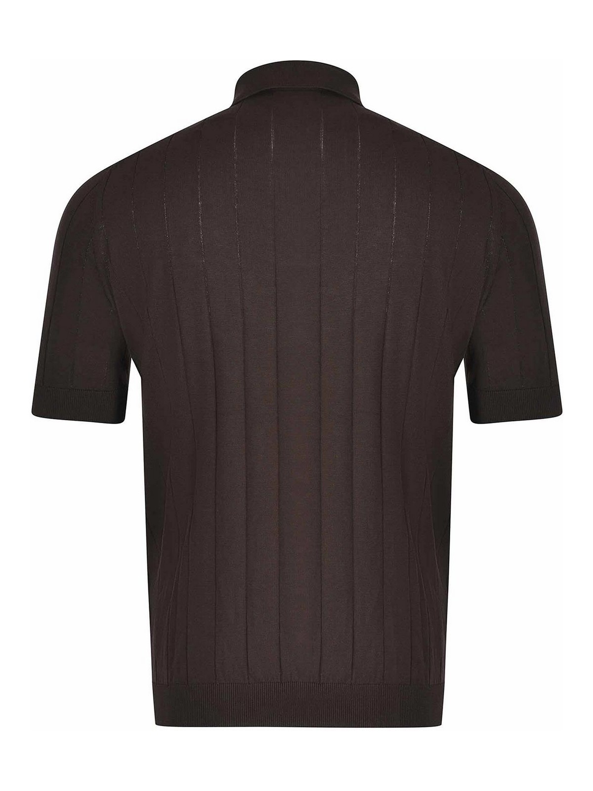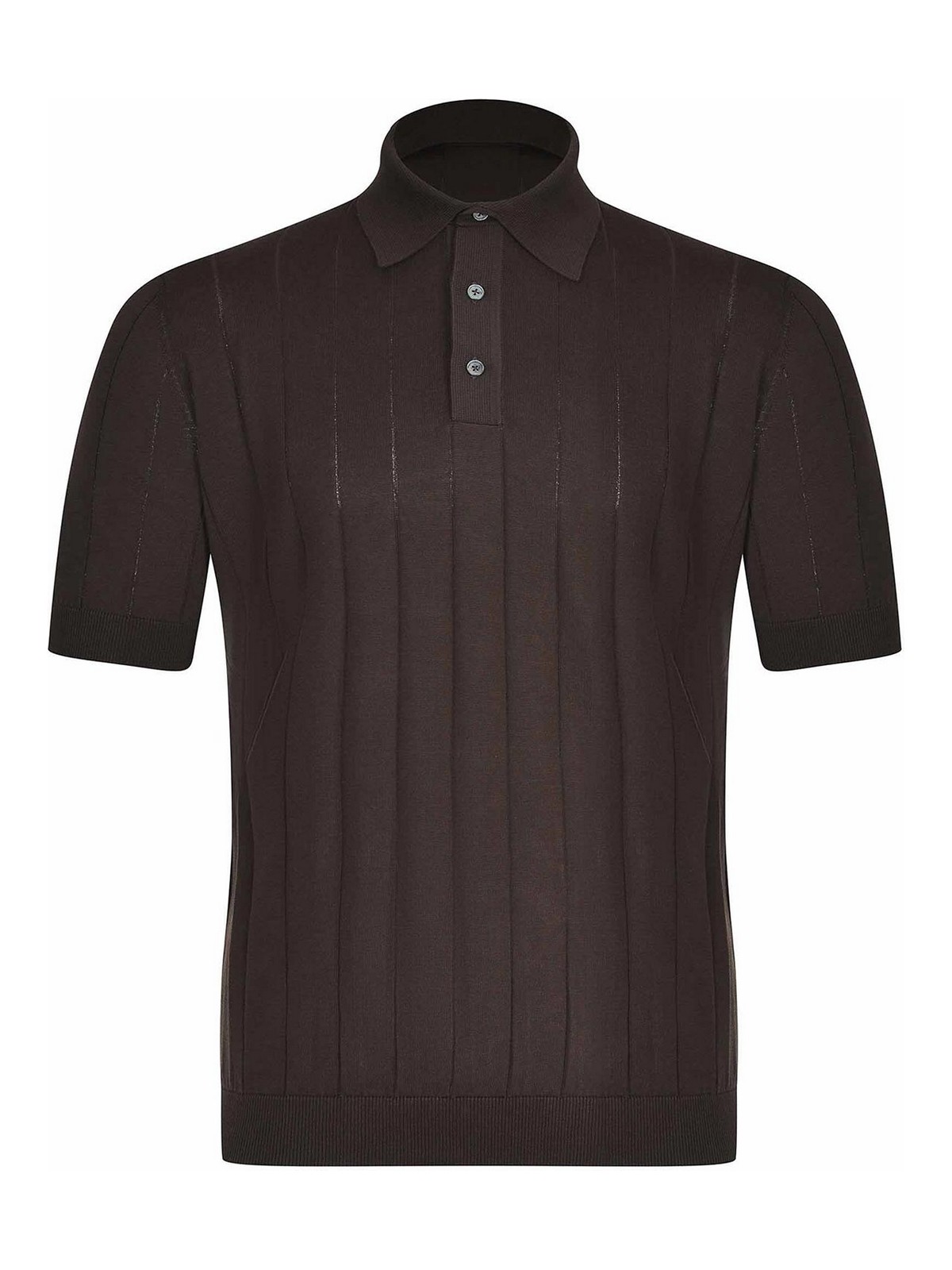 Filippo de laurentiis ポロシャツダークブラウンコットン製。クラシックな襟。胸元はボタン留め。幅広のリブ編み。半袖。100% コットン。イタリア製。