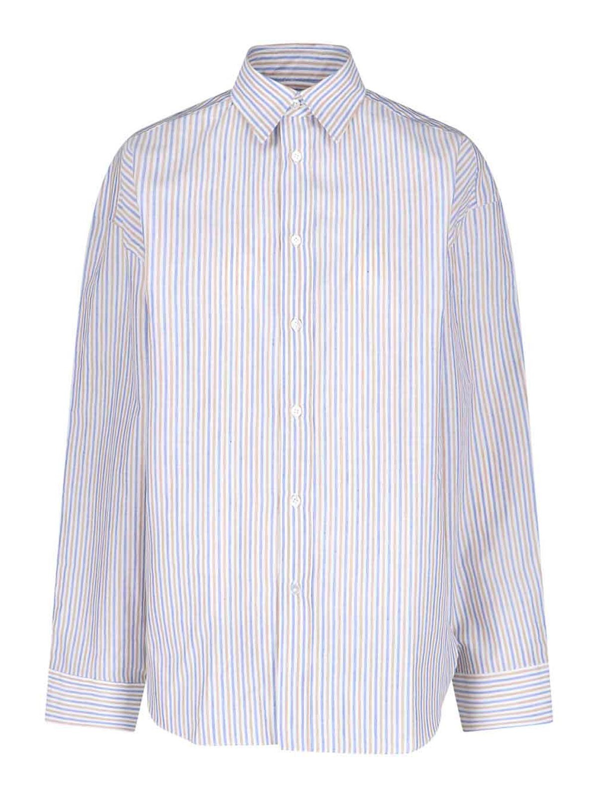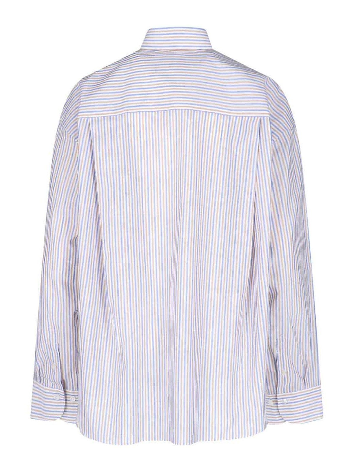 Finamore 1925 oriana オーバーサイズシャツ、白いコットンとリネン製、マルチカラーのストライプ柄、クラシックな襟、ボタン留め、ボタン付きカフス、ストレートヘム。