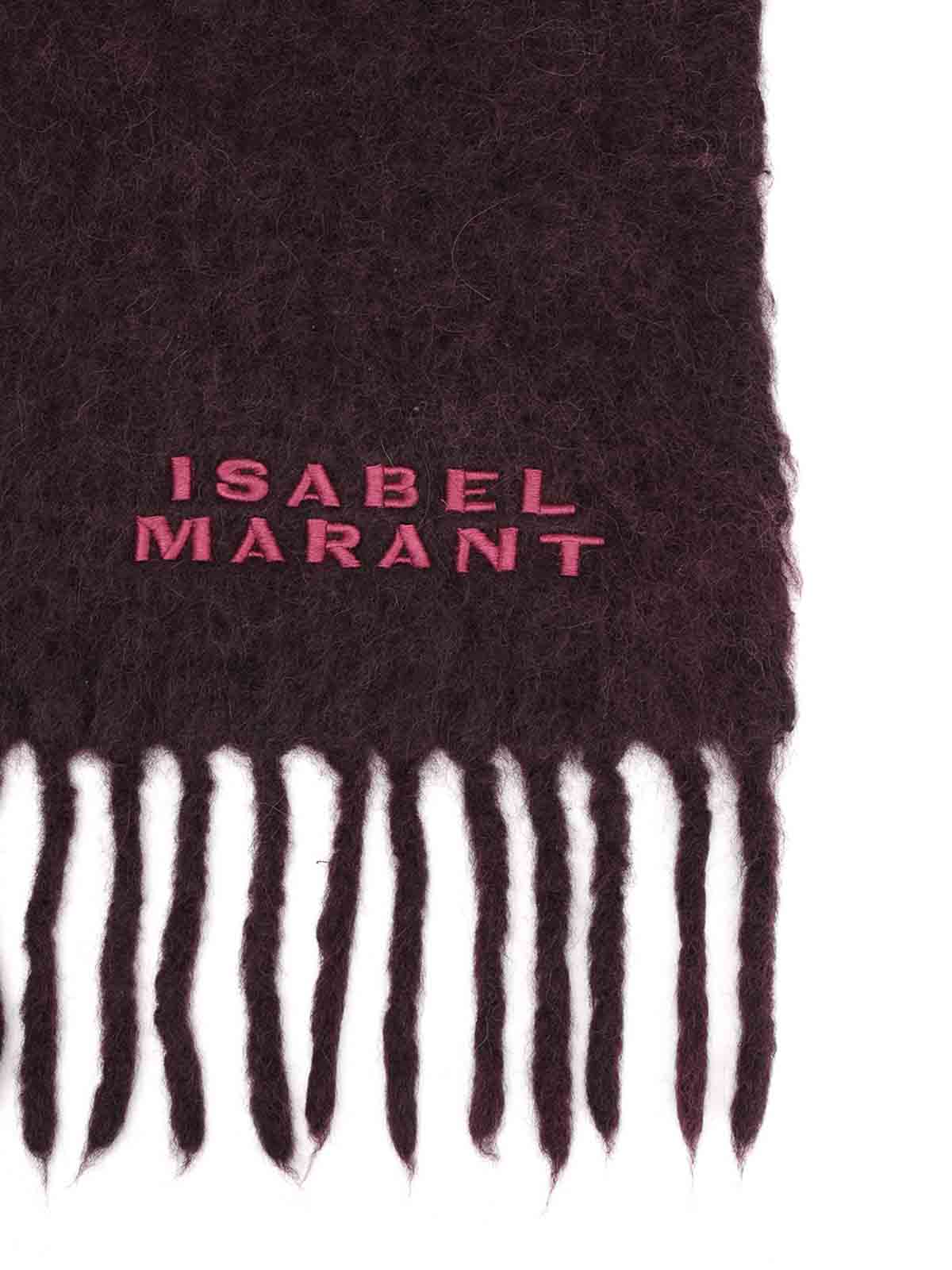 Isabel marantのリバーシブルのフィルナアルパカスカーフは、刺繍されたロゴと短辺にフリンジが付いています。