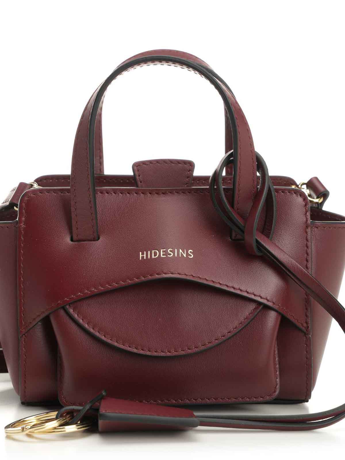 Hidesins レザーフラップ XS バッグ、ハンドルの内側に収まるポーチ、マグネット式クロージャー、調節・取り外し可能なショルダーストラップ、フラットボトム、金メッキの金属製の金具、内ポケット、コットンの総裏地。
