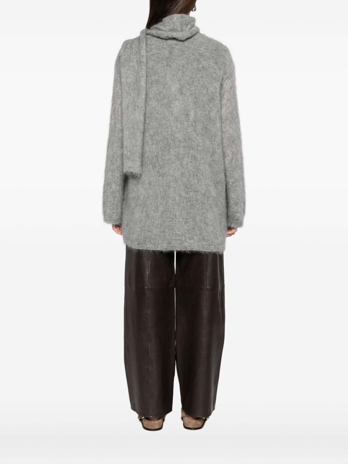 グレー Vネックオープンロングスリーブセルフタイスカーフ