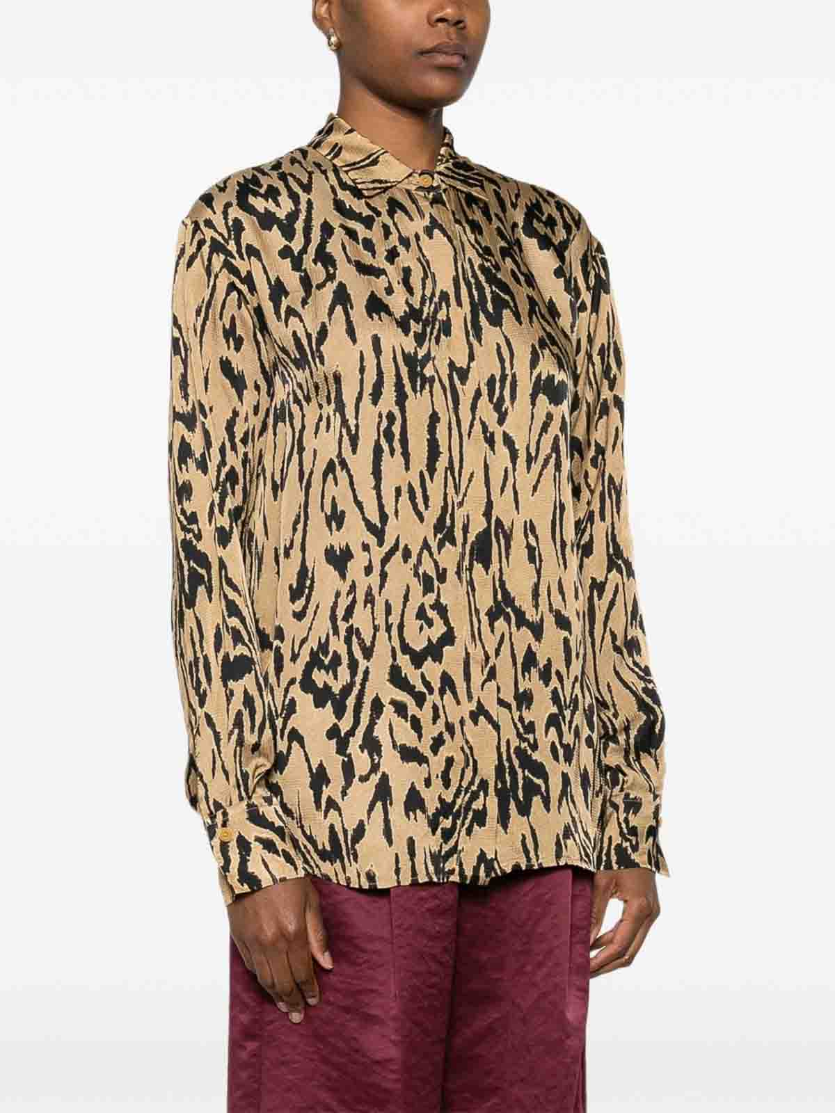ベージュアニマル柄ボタン留め長袖ボタン付きカフスクラシックカラー