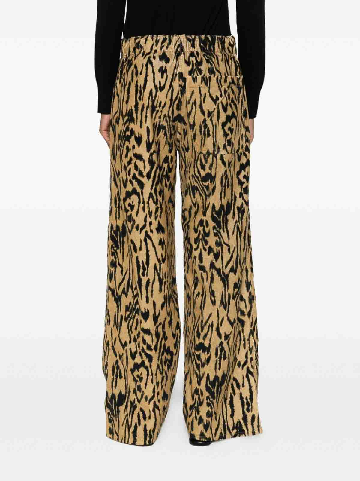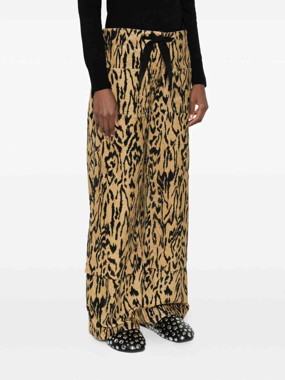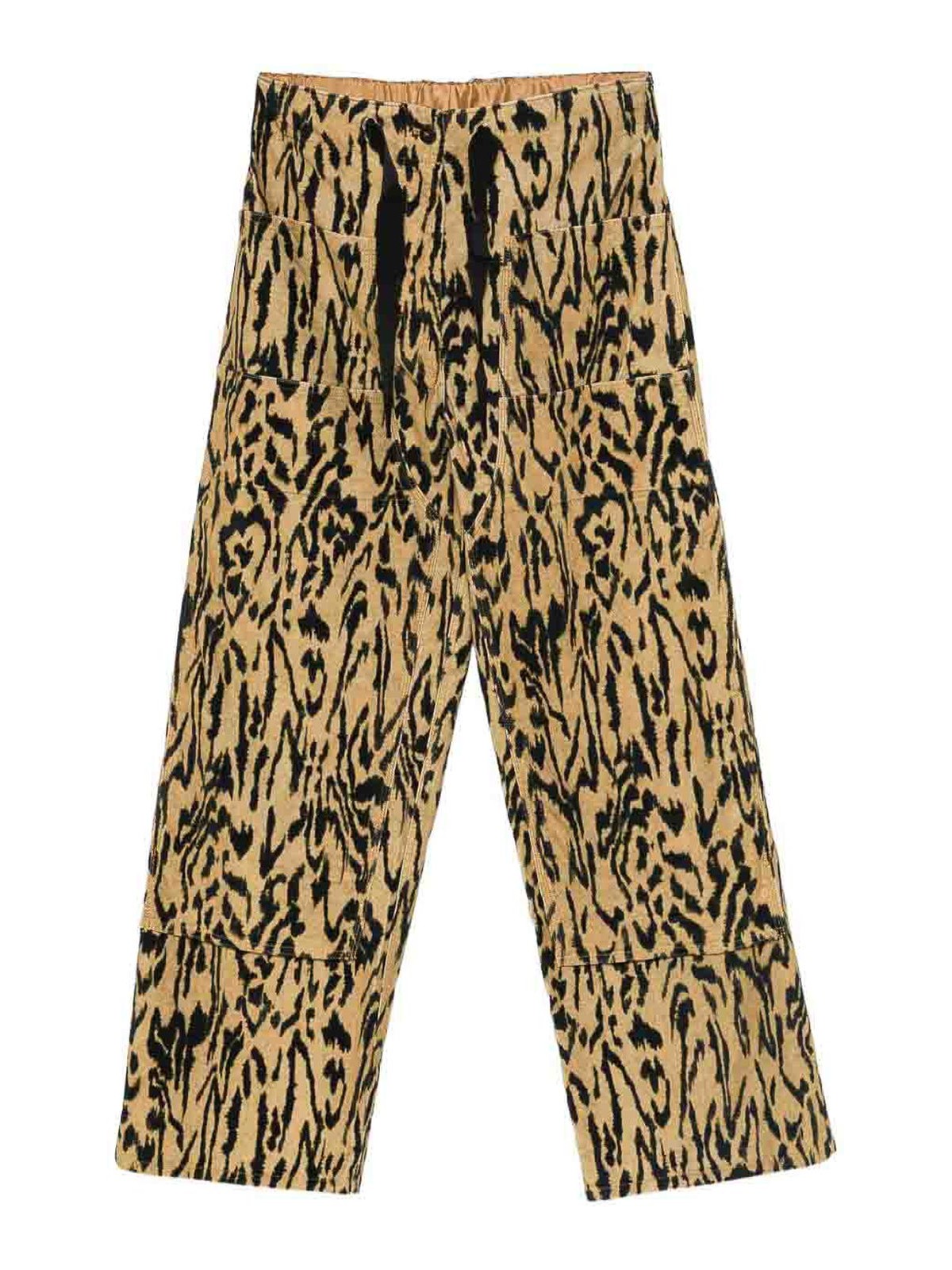 イエローアニマルプリント伸縮ドローストリングウエストバンドストレートレッグ
