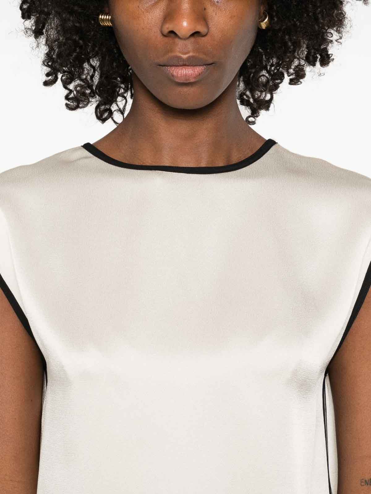 ライトベージュトリムラウンドネックノースリーブ