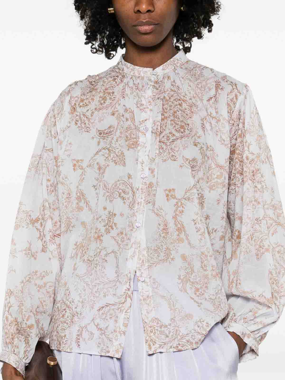 ピンクとマルチカラーの花柄ボタン付き長袖ギャザーボタン付きカフス