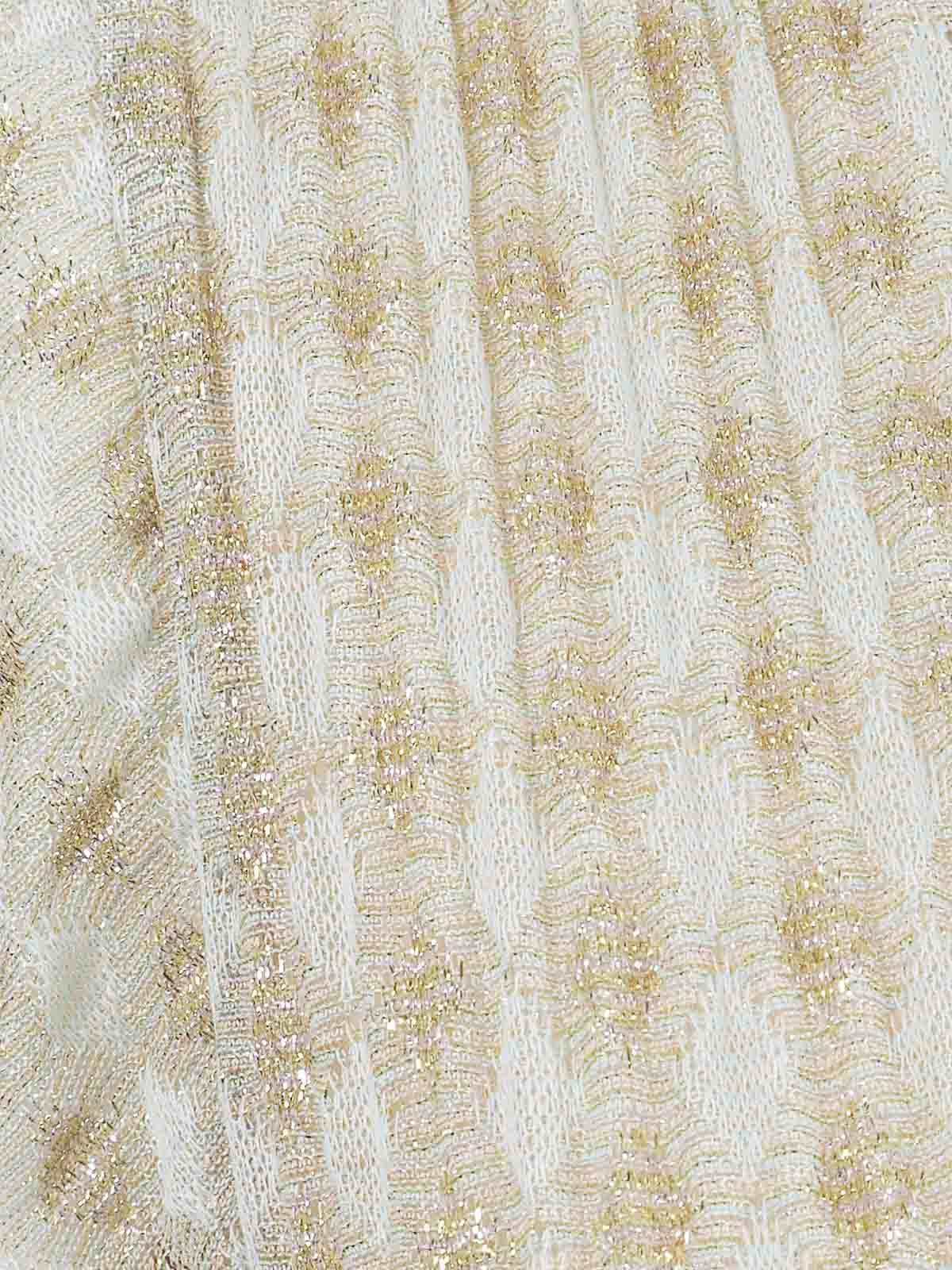 フォルテフォルテのダイヤモンドジャージードレス。フェミニンなライン:裾がフレアに開くスカート、前面と背面の両方に非常に深いVネックのコレット、プリーツデザイン。ルレックス糸が特徴。