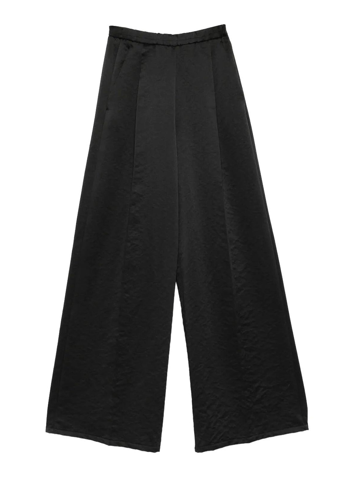 プリーツと伸縮性のあるウエストのパンツ