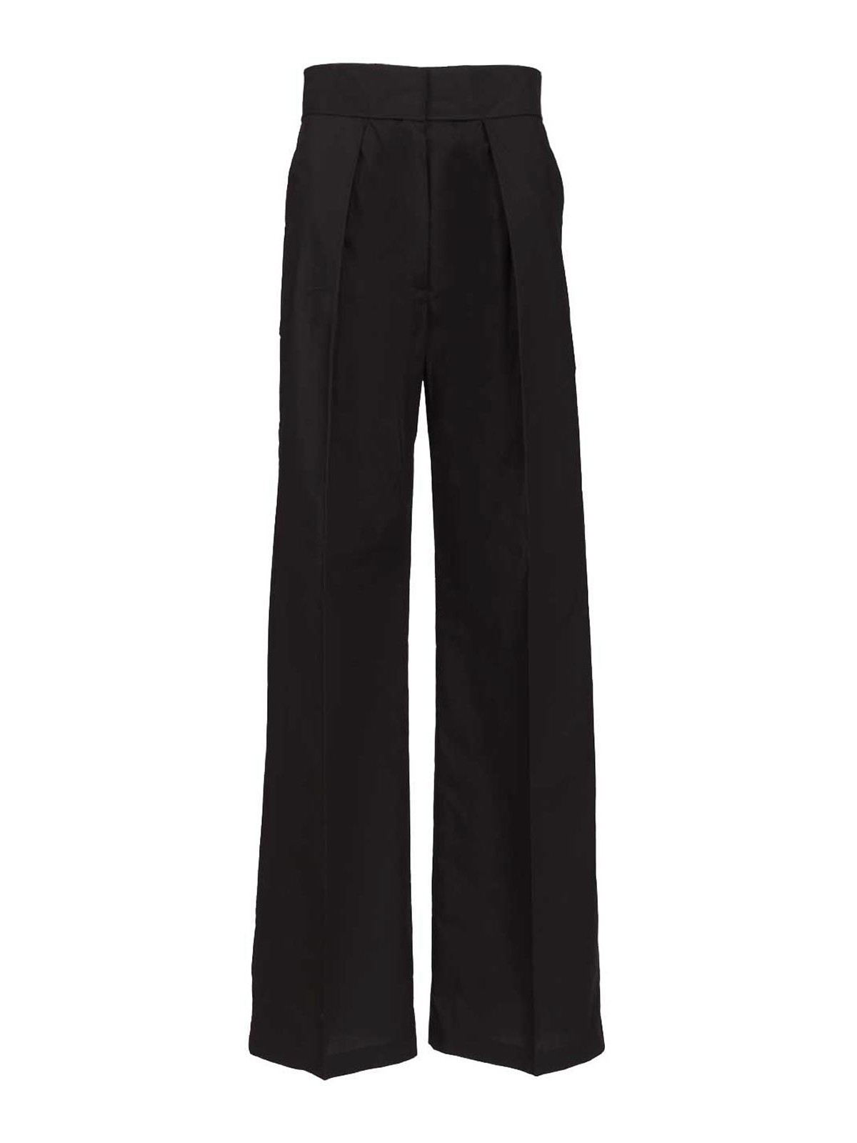 フォルテフォルテのプリーツパンツ軽量スリムシルエットハイウエスト、ベルトとダブルフック、アイ、ダブルプリーツ付き