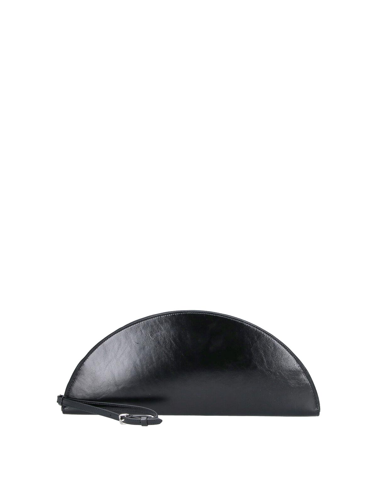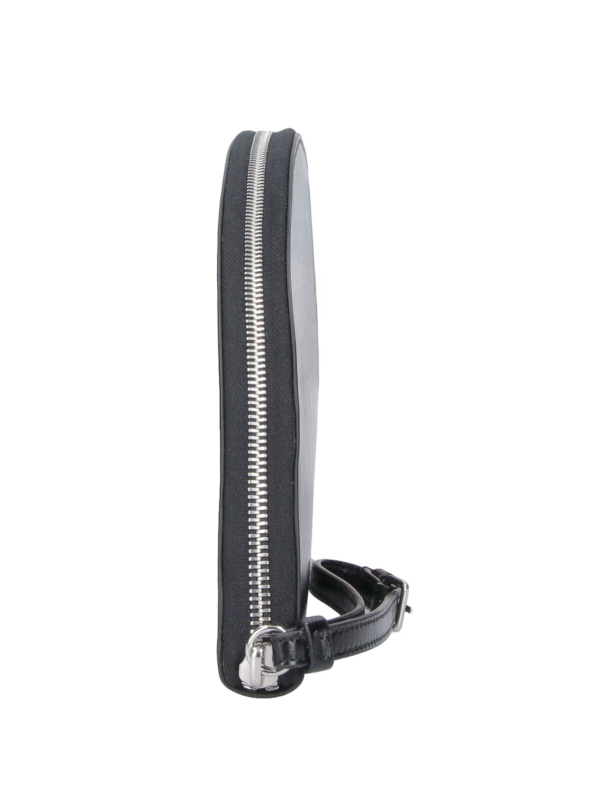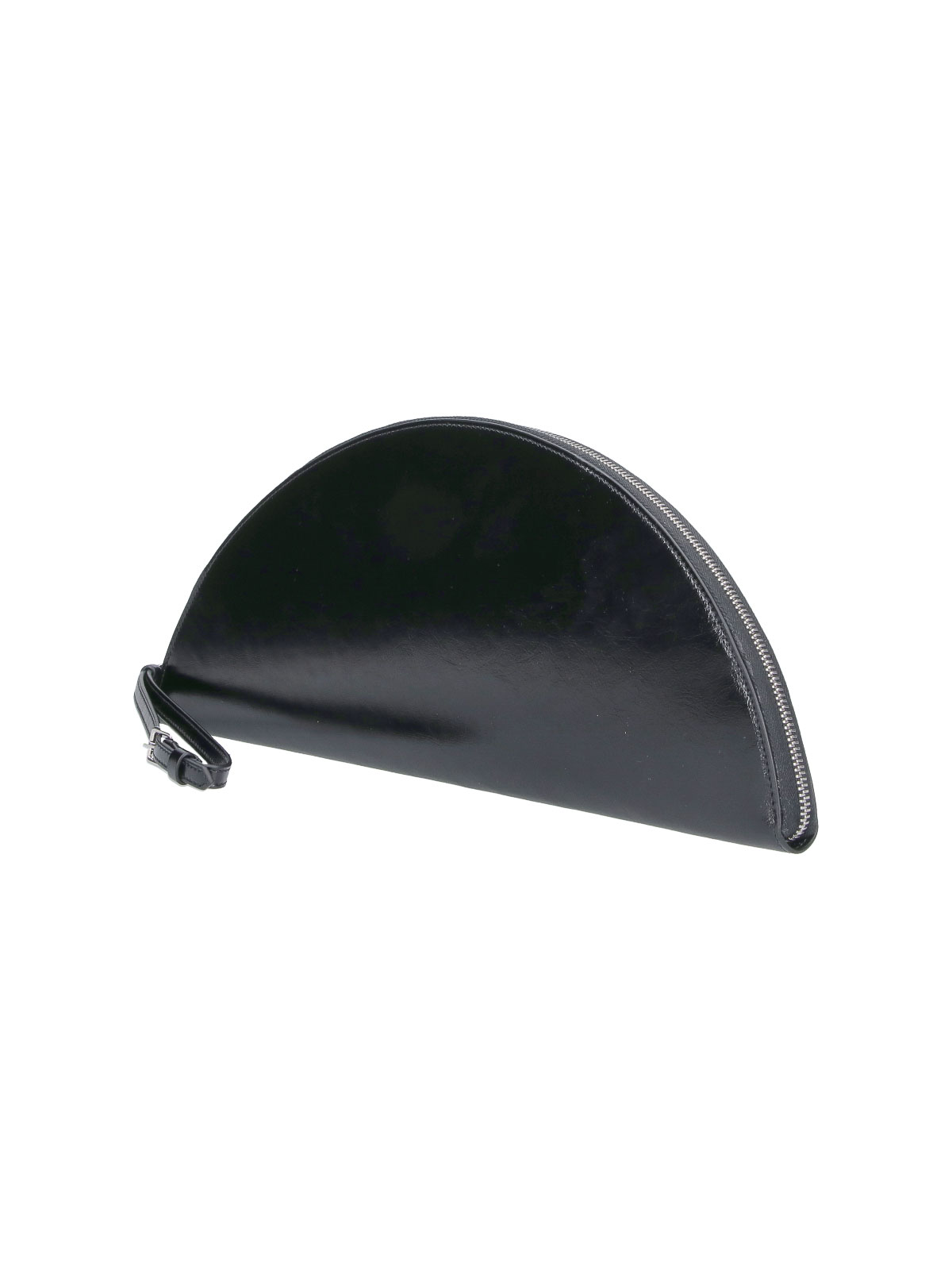 Maison Margiela レザーポーチ、ブラック、上部にファスナー付き、調節可能なリストストラップ、背面にコントラストカラーの4ステッチステッチ、内側にボタンフラップポケット1つ、メインの内部コンパートメント1つ。