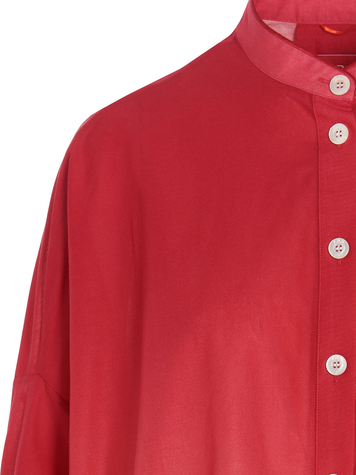 noto' シャツ風コットンドレス、ハーフボタンとマンダリンカラー