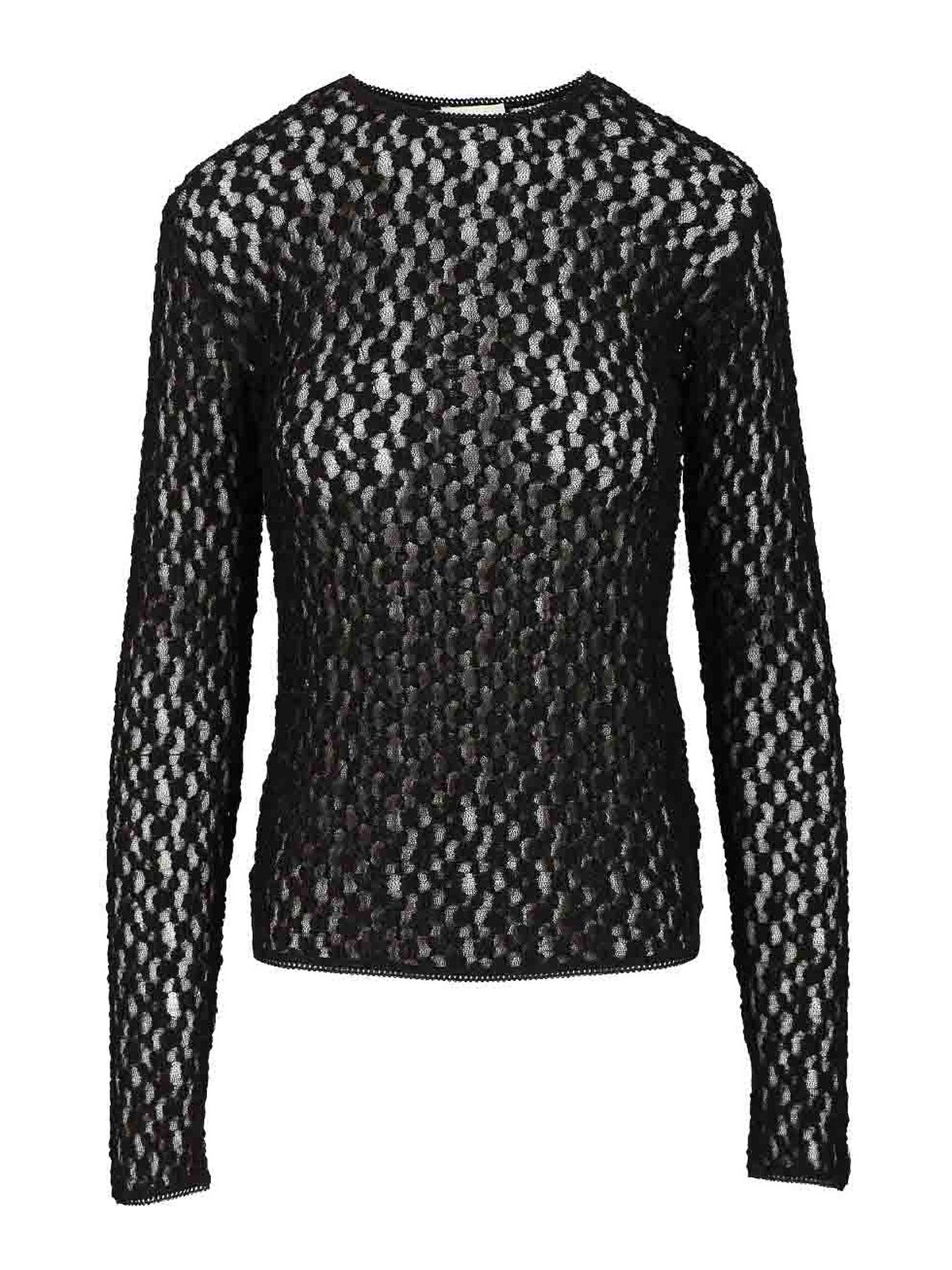Isabel marantのガエルロングスリーブストレッチレーストップは、花柄のモチーフで、ラウンドネックライン、スカラップトリム、フィットカットが特徴です。