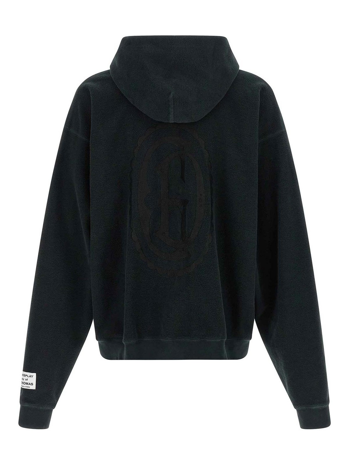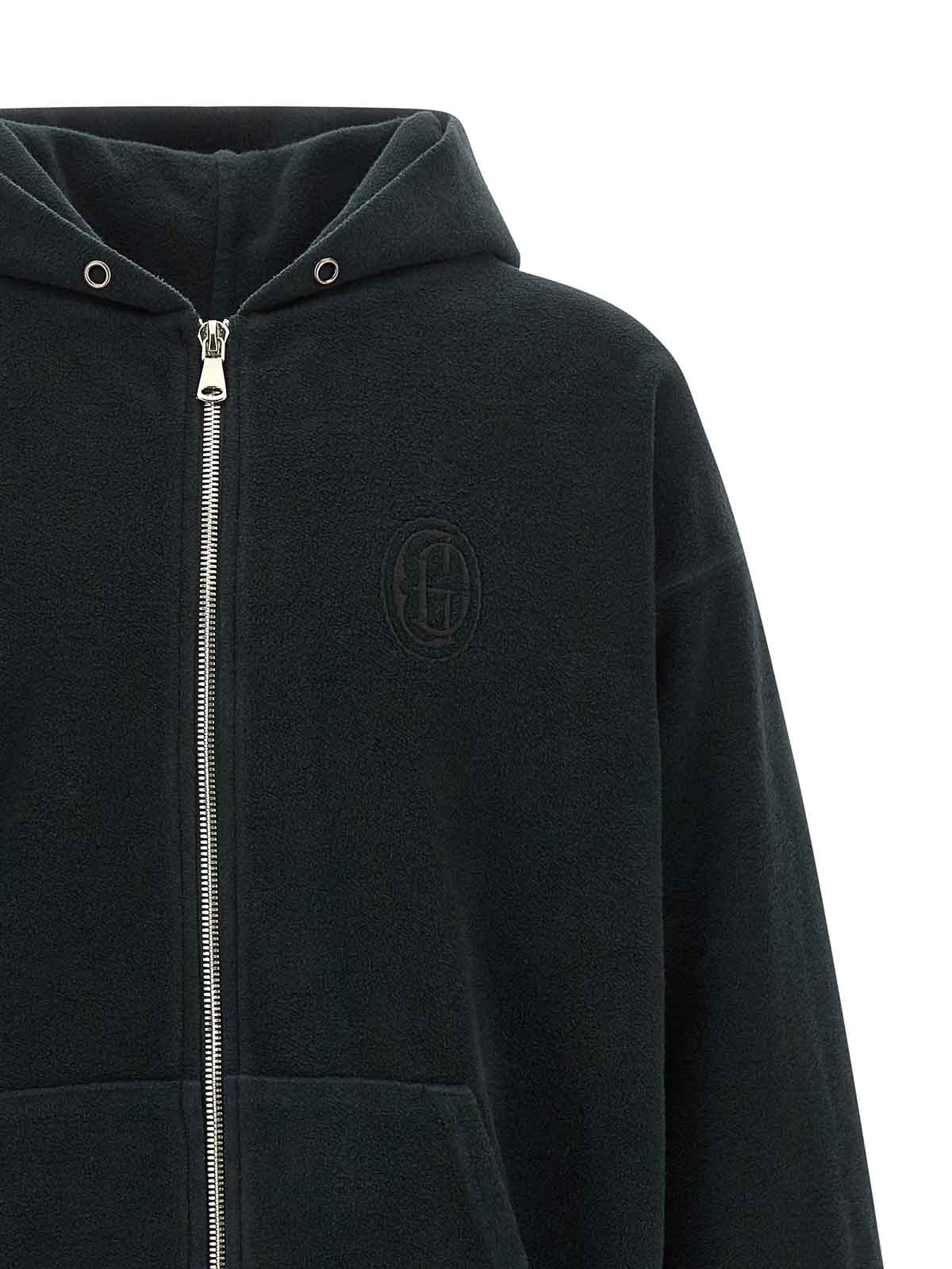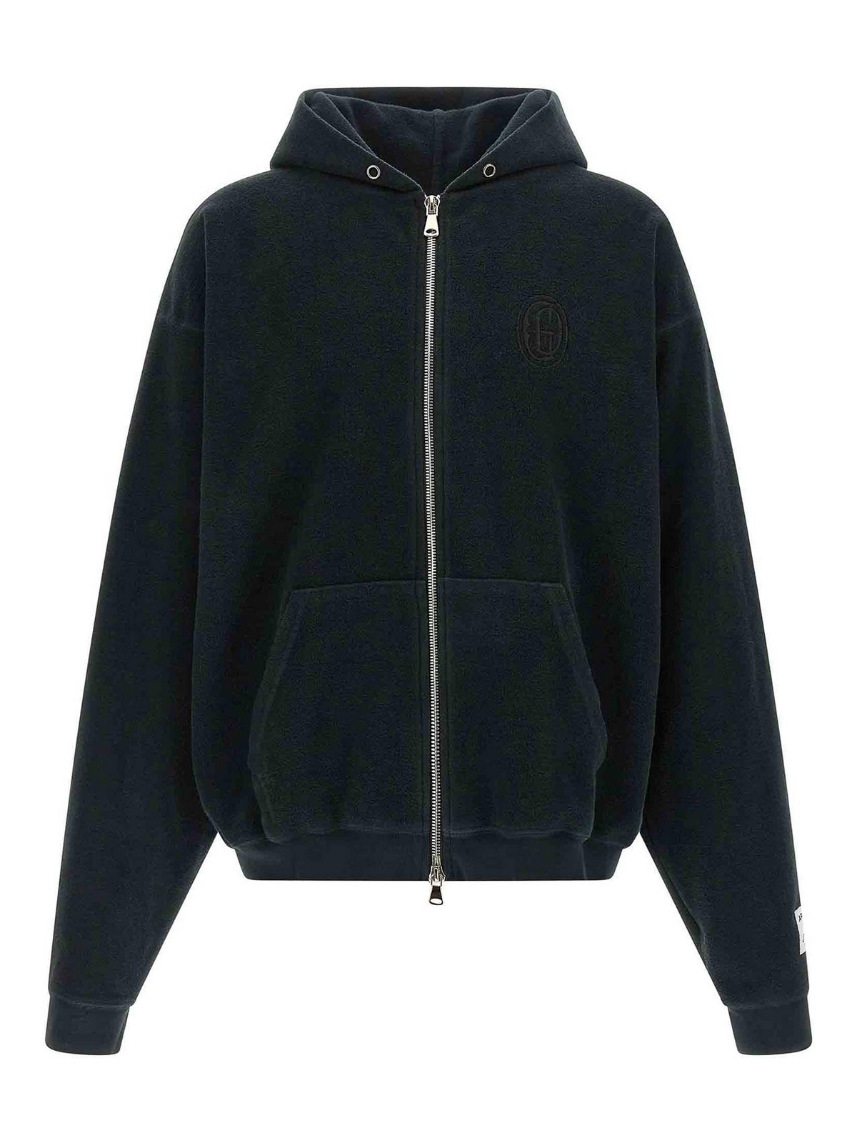 フロントジッパー付きインバーテッドコットンパーカー、フロントポケット、バックにマキシトーナルロゴ刺繍、カフス付きロングスリーブ。