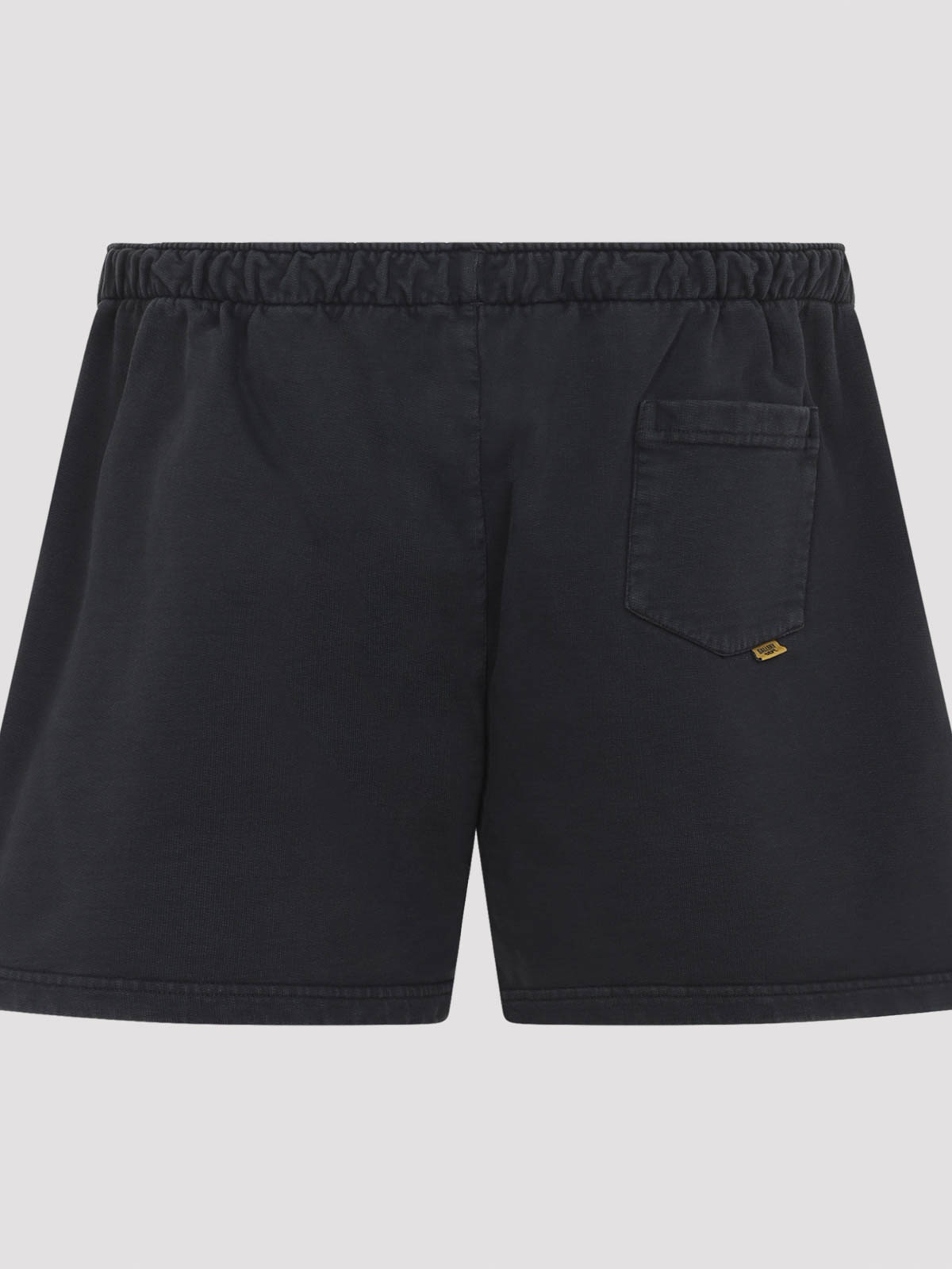 ギャラリーデパートビンテージブラックコットンズマショーツ。ピュアヴィンテージブラックコットンショーツ、ゴムウエスト、サイドコントラストの効いたホワイトレタリングロゴ、バックパッチポケット、ストレートヘム。