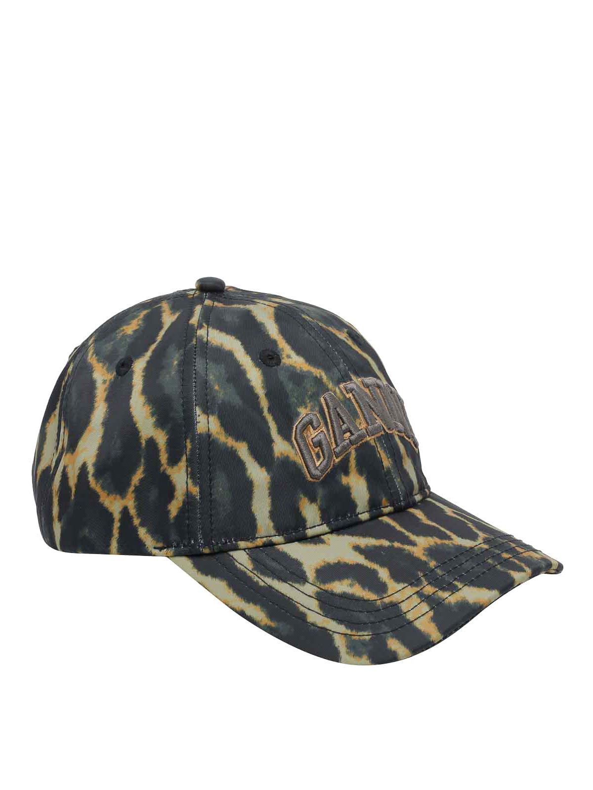 Ganniブラックプリントロゴベースボールキャップ、プリントモデル、正面ロゴ