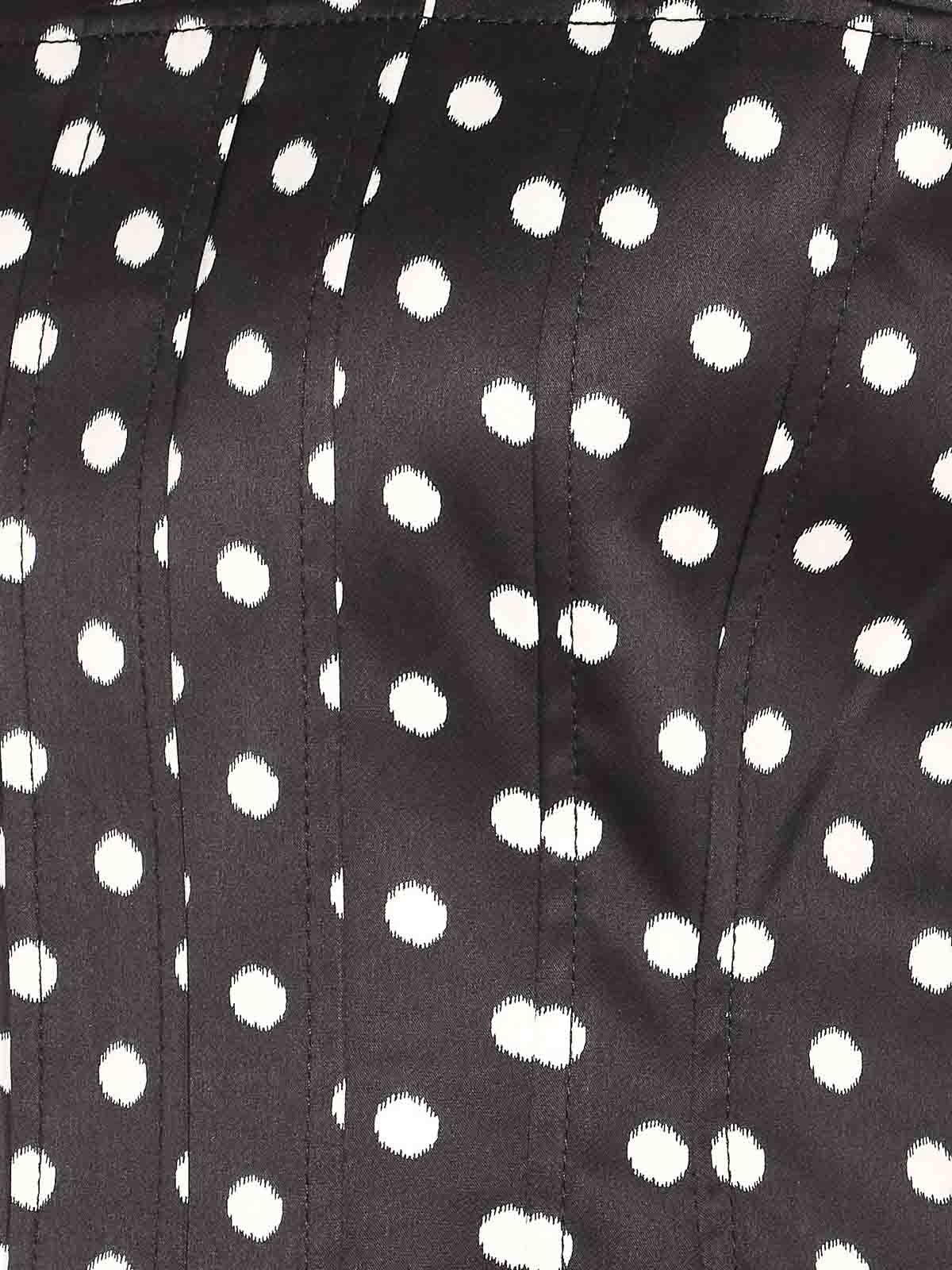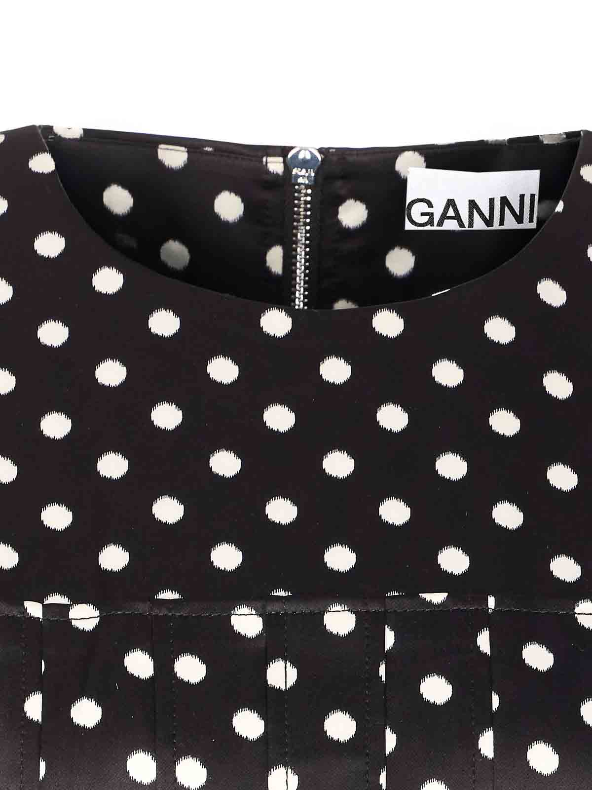 Ganniブラックプリントドットプリントトップ、補強ショルダー、クルーネック、背面にファスナー付き、ノースリーブ