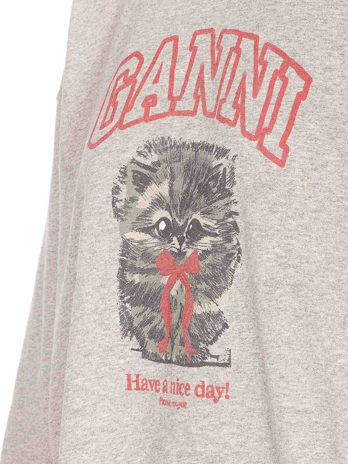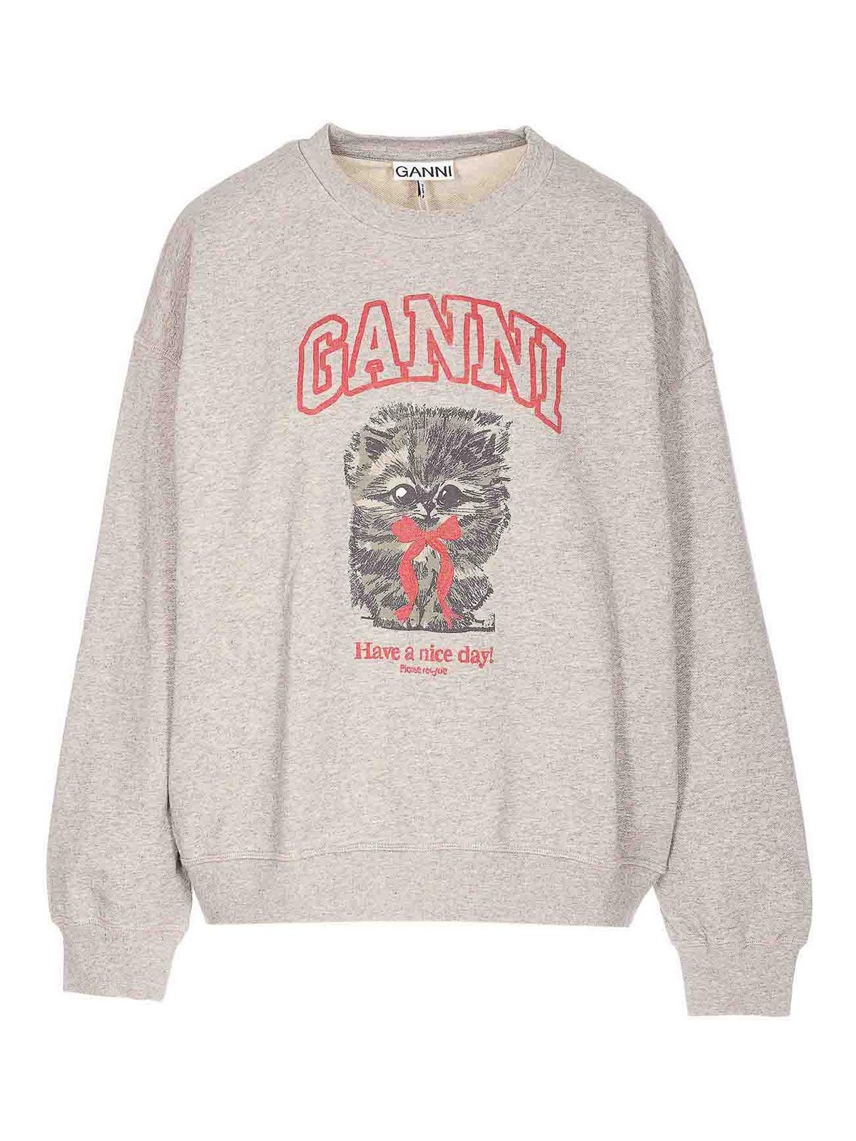 Ganni グレー isoli スウェットシャツ、クルーネック、前面にプリント