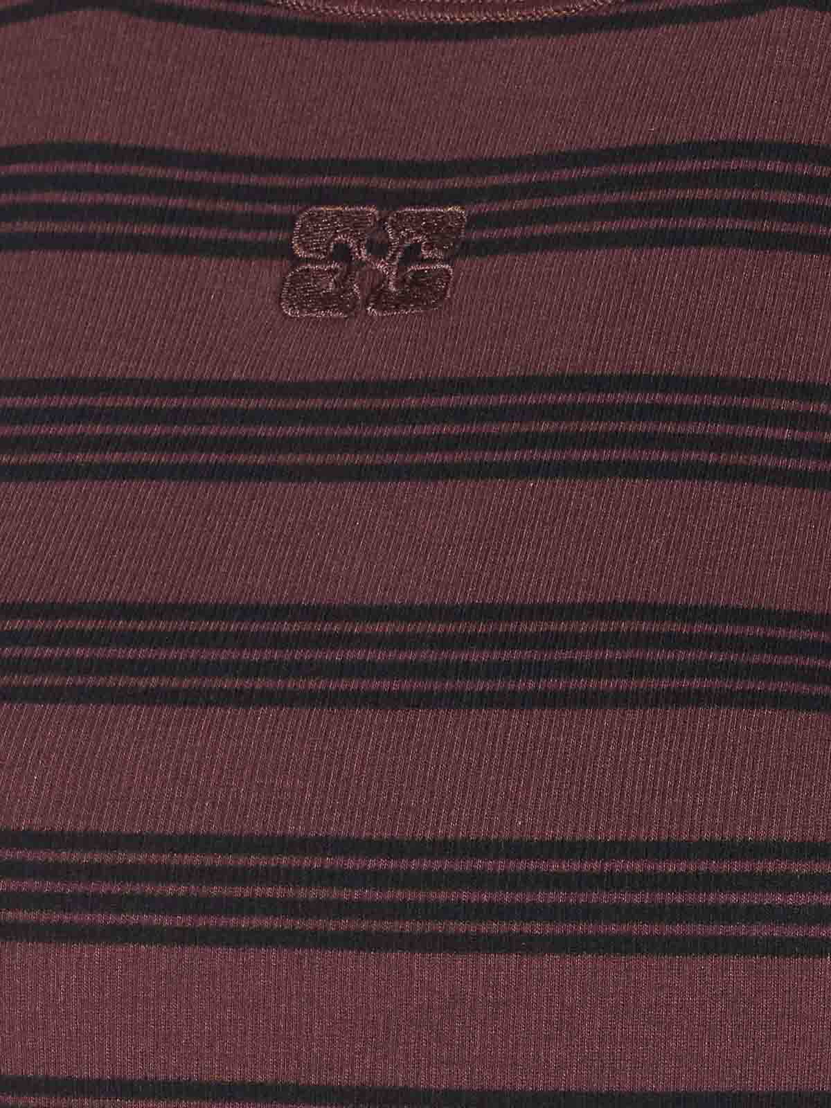 Ganniブラウン+ブラックタンクトップ、クルーネック、前面にロゴ刺繍、ストライプ