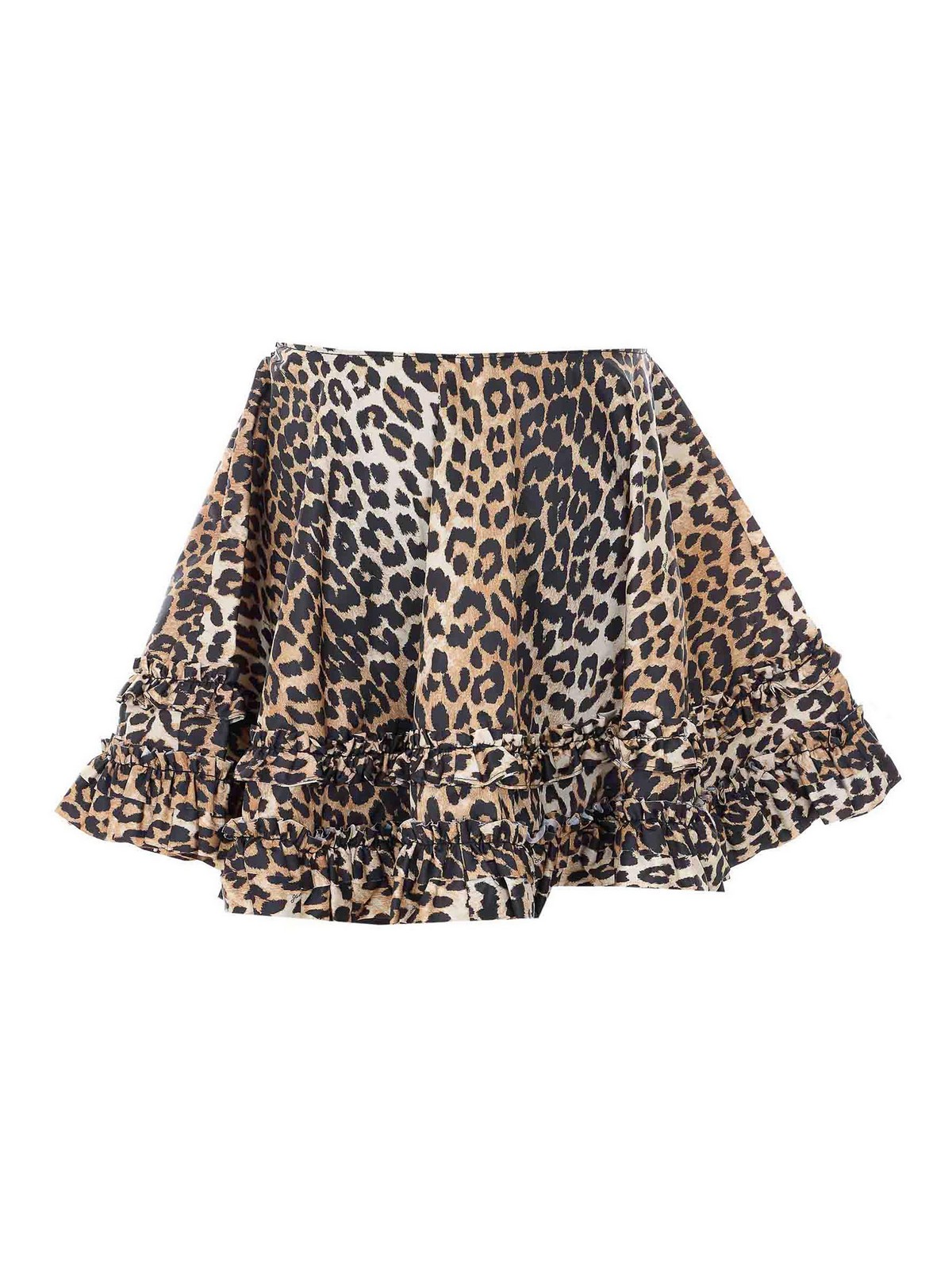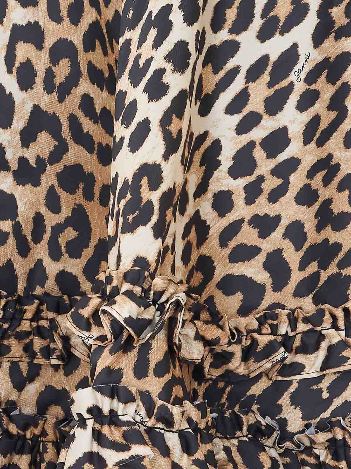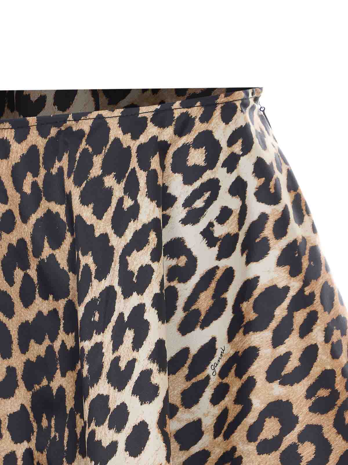 Ganniアーモンドミルクプリントダッチェススカート、ファスナー開閉、下部にルーシュ、ヒョウ柄