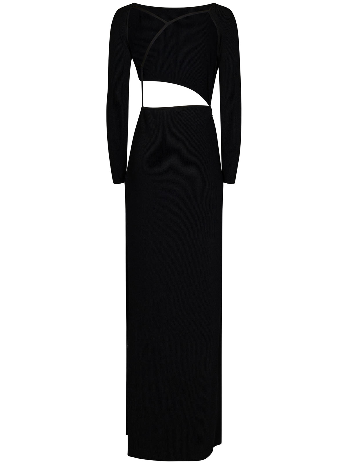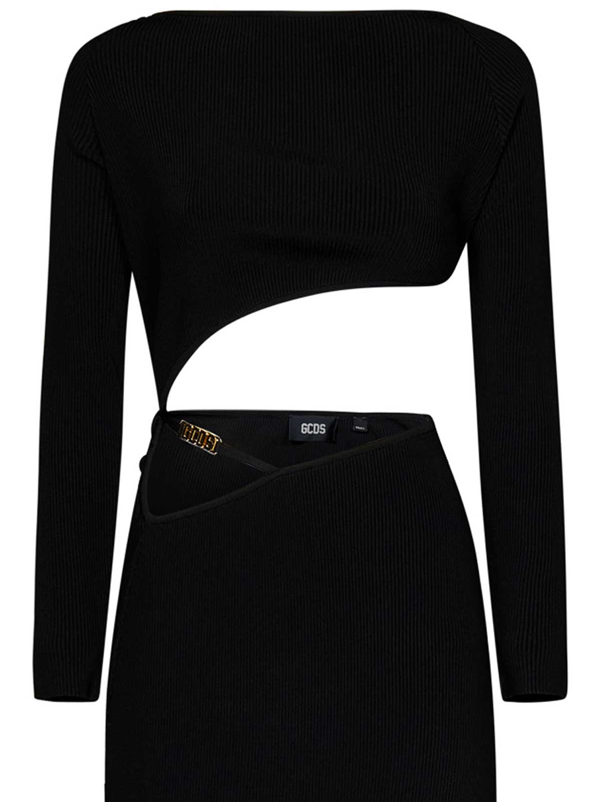 ボートネックライン、長袖、露出ウエスト、背中の深いサイドスリットクリップ、ロゴ入り、ブラックカラー。写真のアイテムはSサイズに対応しています。
